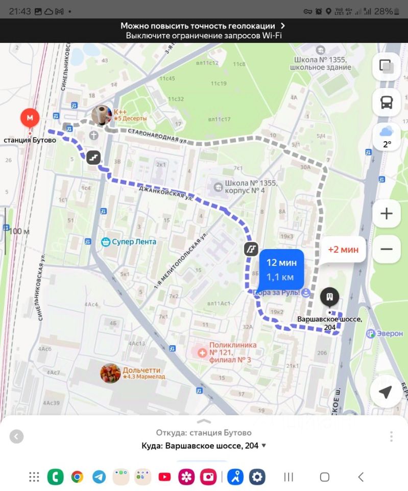 12 минут пешком от МЦД Бутово