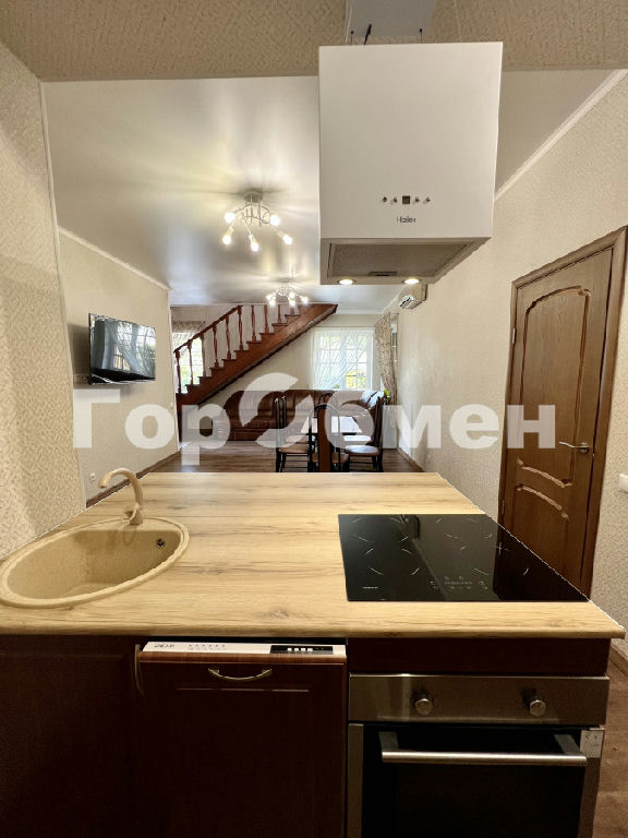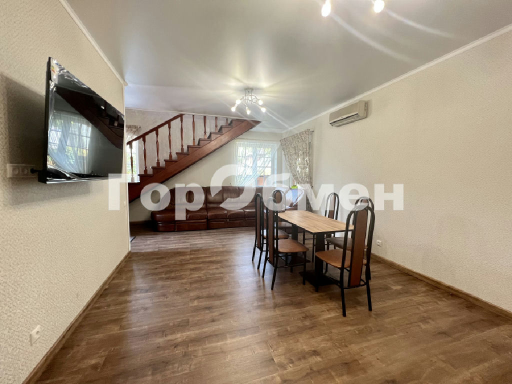 О ДОМЕ: на первом этаже большая кухня-гостиная, оборудованная встроенной мебелью и техникой (холодильник, посудомоечная машина, варочная панель, духовка, вытяжка, телевизор) спальня с собственной ванной комнатой, бойлерная, общая ванная комната; второй этаж - большая светлая гостиная с большим количеством окон и выходом на веранду, с/у, спальня и комната свободного назначения (можно использовать как детскую комнату или кабинет). Дом оборудован кондиционерами.