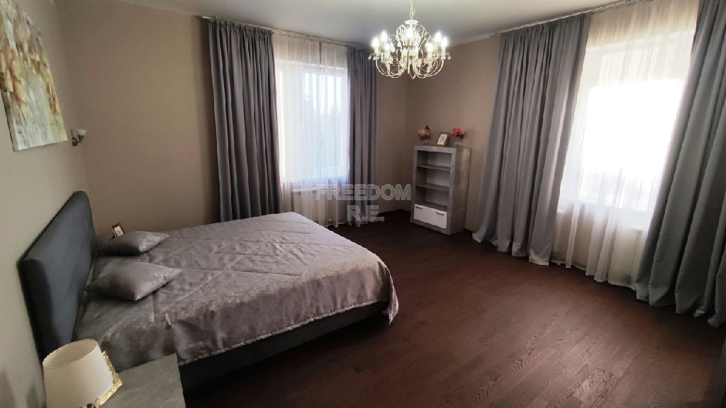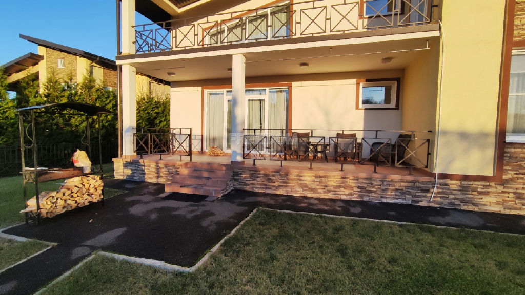 1 эт: кухня, гостиная с камином, столовая с выходом на террасу, спальня, гардеробная, постирочная, с/у с сауной, душ, 2 эт: 3 спальни, 2 с/у, гардеробная. Мансарда свободного назначения 80 кВ.м. Охраняемый коттеджный поселок на восемнадцать домовладений. На территории Ресторан "Баскюль", Конный клуб, Зоопарк "ЗооСад", Гостиница "Покровское-Дивное", Музей отечественной военной техники. Детские и спортивные площадки, есть выход в лес. В доступности вся необходимая инфраструктура д. Покровское, с. Павловская Слобода. 5 минут на автомобиле торговый комплекс Novaya Riga Outlet Village. Удобное транспортное сообщение с Москвой