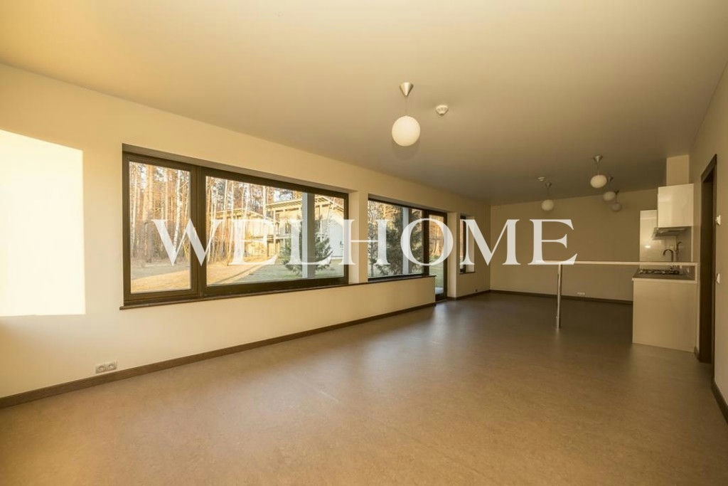 Два этажа с четырьмя спальнями, тремя санузлами, гардеробной и просторной студией с панорамными окнами.