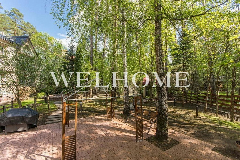 ID объекта на сайте Welhome: ZA-3799. Предлагается красивый особняк на красивом лесном участке в камерном поселке на 8 домовладений. В доме есть отдельное крыло с бассейном, турецкой баней и сауной, гостиная с камином, 4 спальни, 4 с/у. На ландшафтном участке создан декоративный пруд с водопадом, растут хвойные деревья, кустарники и цветы, оборудована беседка-барбекю, возведен теплый гараж на 2 машины с 2 комнатами для охраны.Поэтажное описание: Цоколь: бильярдная, бар, бассейн, сауна, турецкая баня, с/у;1 этаж: прихожая, 2 с/у, гостиная с камином, балкон, кухня-столовая, 2 гостевые спальни;2 этаж: детская спальня, спальня с с/у+джакузи+душ+гардеробная, кабинет с выходом на балкон.