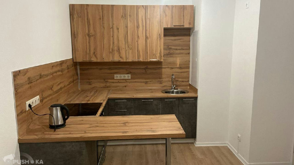 Планировка: кухня-гостиная 14 кв.м, отдельно изолированная спальня 12 кв. м, лоджия застеклена, су совмещенный.