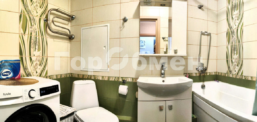 Удобства: Совмещенный санузел с полноценной ванной. Вся необходимая мебель и техника (холодильник, стиральная машина, микроволновка, духовка, кондиционер, двуспальная кровать, диван).
