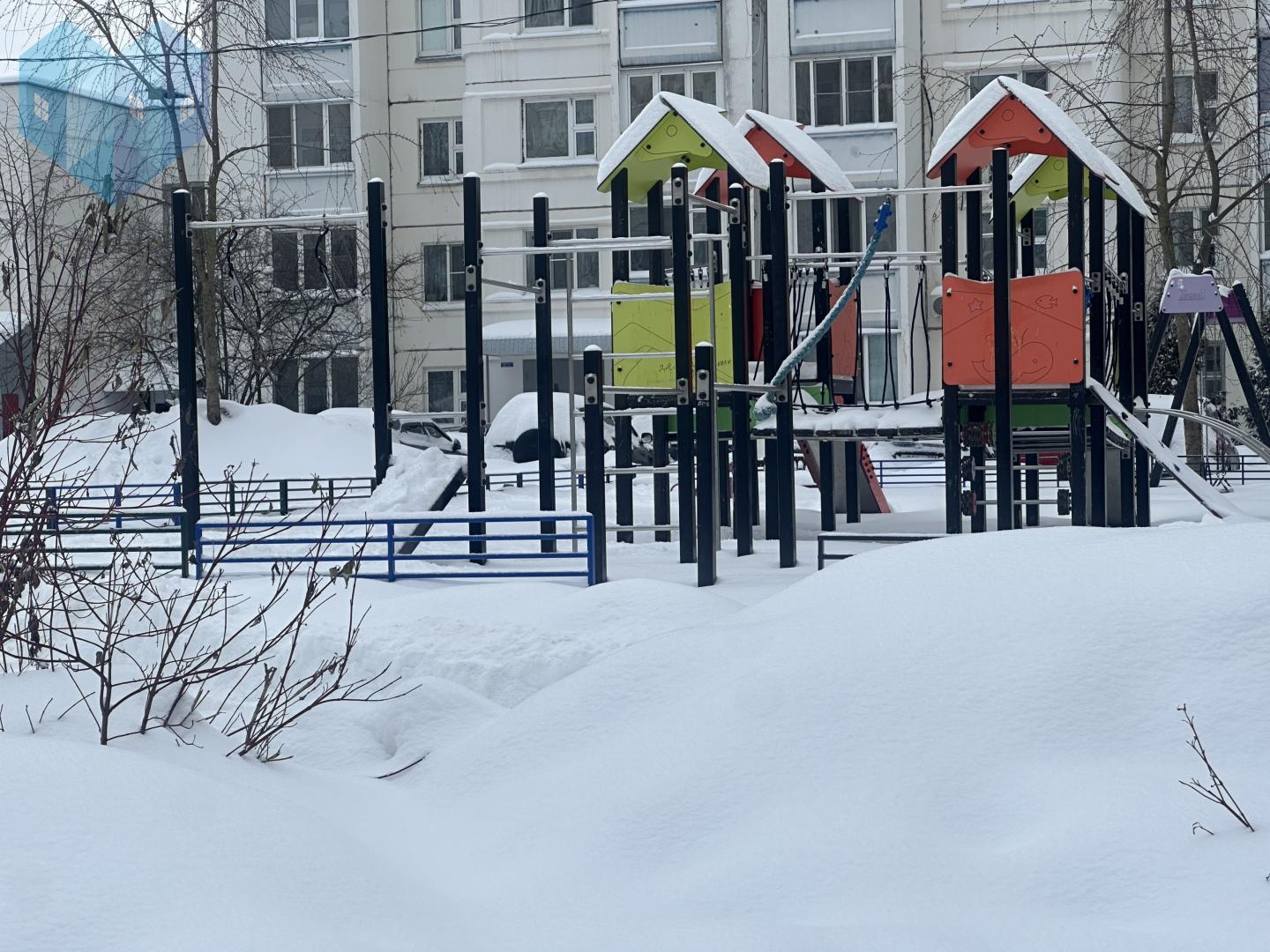 Тихий двор с местами для парковки, в шаговой доступности хвойный лес для прогулок, поле для катания на лыжах, магазины, детская площадка.