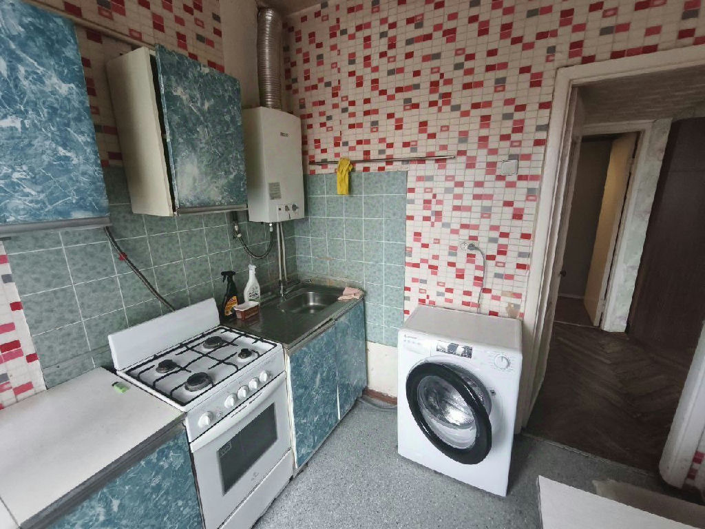 Кухонный гарнитур оснащен духовой печью. Подключена стиральная машина. Из дополнительных преимуществ - наличие лоджии.