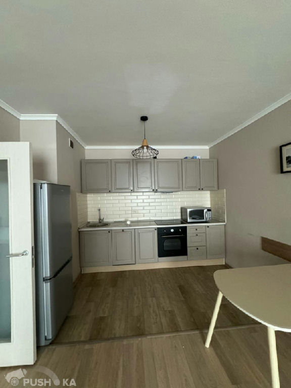Есть все: встроенная кухня с техникой: варочная панель с вытяжкой, духовой шкаф, посудомоечная машина; холодильник, угловой диван; в спальне: двуспальная кровать, комод, шкаф, в су: ванная, стиральная машина, в коридоре также имеется шкаф; кондиционеры в комнате и в гостиной.