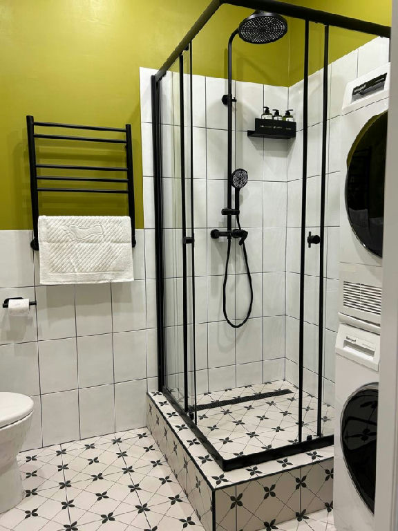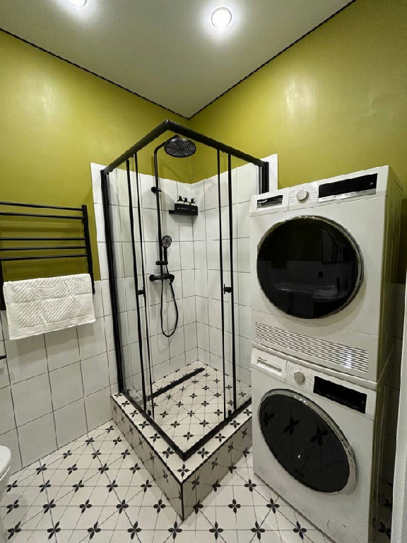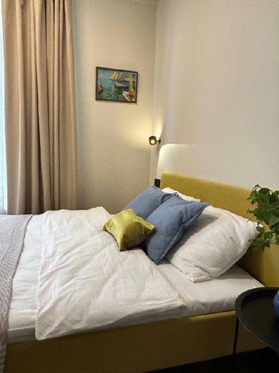 Интерьер апартаментов отличается стильным дизайнерским ремонтом, который создаёт атмосферу уюта и комфорта. Совмещённый санузел выполнен в современном стиле и оснащён всем необходимым для удобства жильцов. На кухне вся необходимая встроенная бытовая техника: холодильник, посудомоечная машина, варочная поверхность, микроволновая печь, чайник. Установлены стиральная и сушильная машины. В квартире ни кто не жил, сдается впервые!