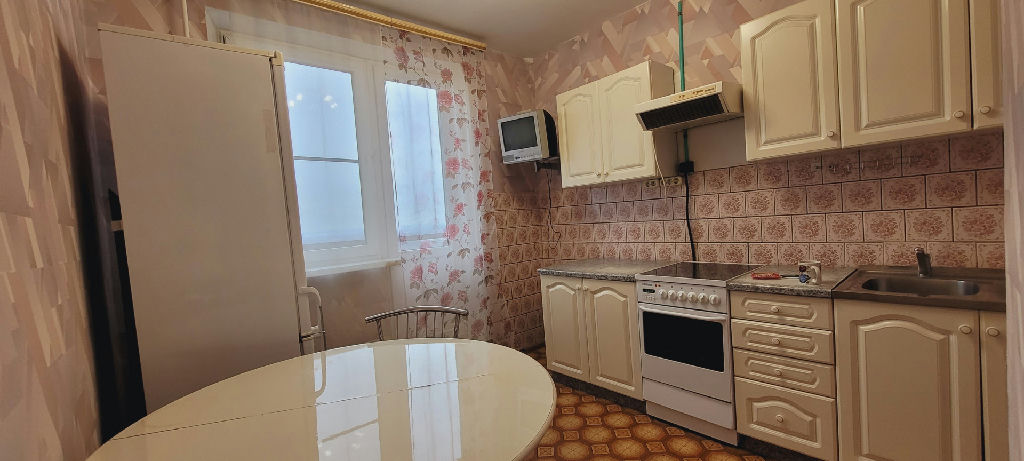 Вашему вниманию предлагается просторная однокомнатная квартира. В комнате двуспальный диван, мебельная стенка, два кресла, выход на утеплённый балкон. На кухне электроплита , двухкамерный холодильник , обеденный стол, вторая лоджия. Санузел раздельный. В ванной стиральная машинка автомат.