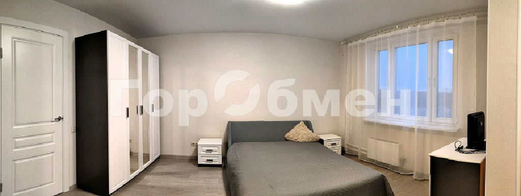Комната: Спальный гарнитур (двуспальная кровать с ортопедическим матрасом, прикроватные тумбы), большой вместительный шкаф, комод, телевизор, кондиционер.