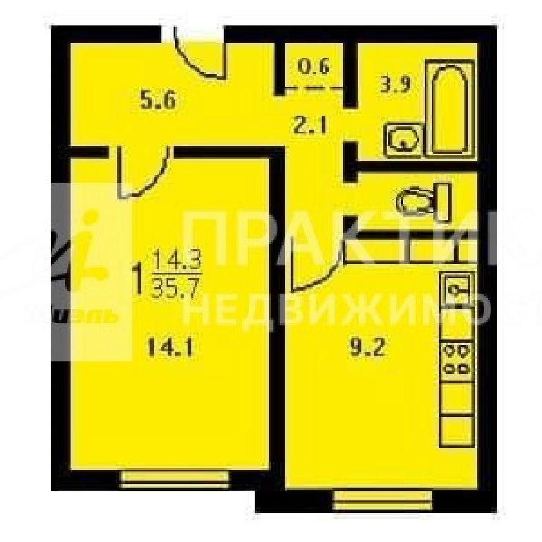 Общая: 35,7 м2