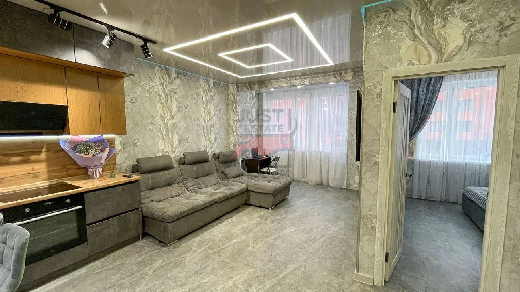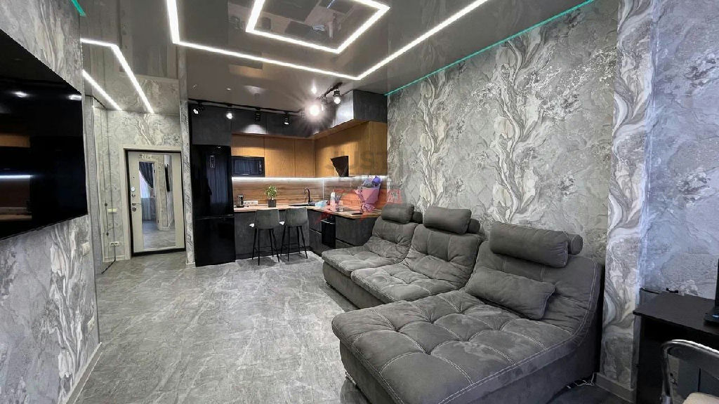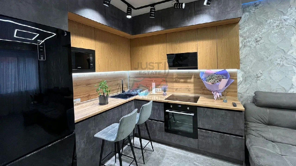 Шикарная кухня-гостинная. Балконный блок объединен с гостиной. И отдельная уютная спальня.