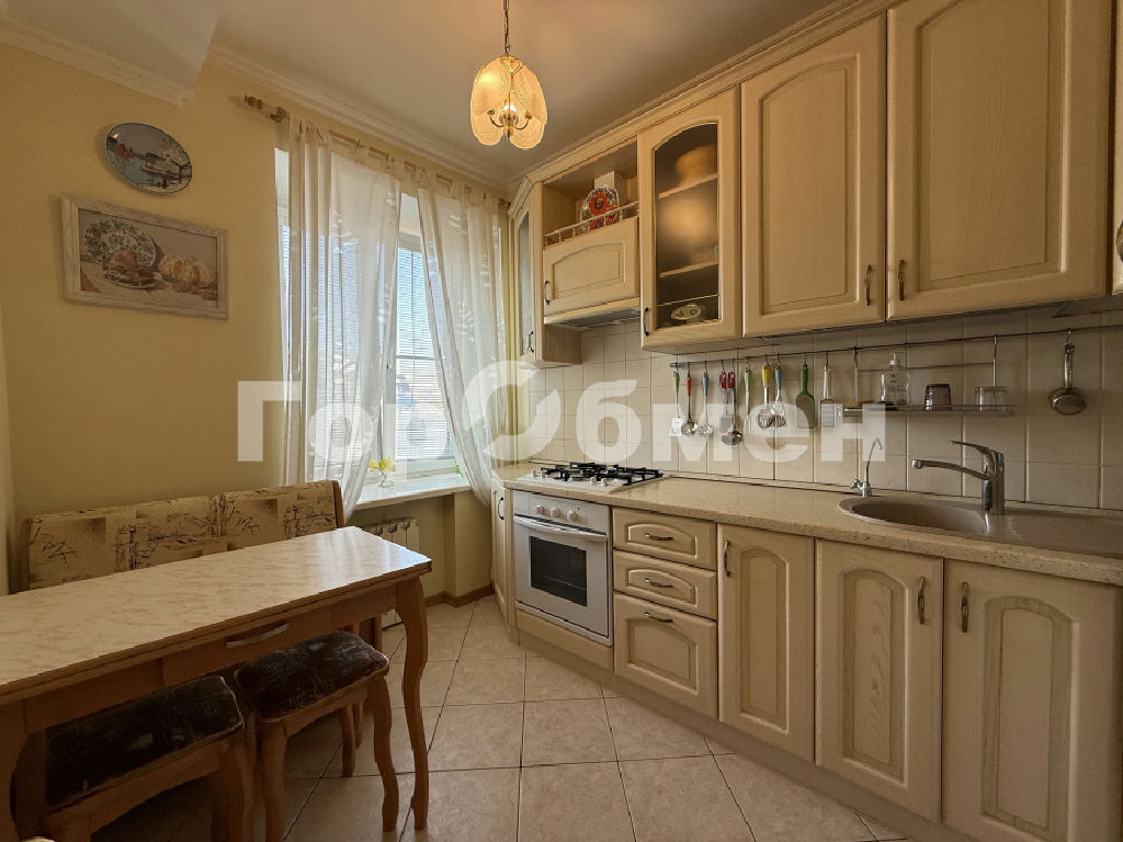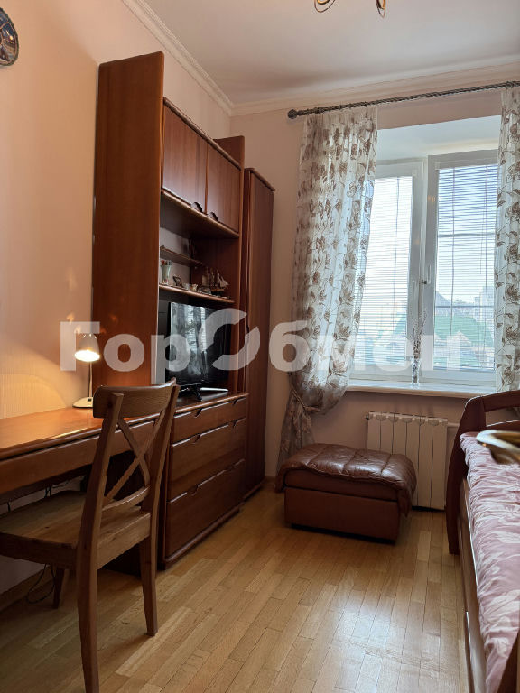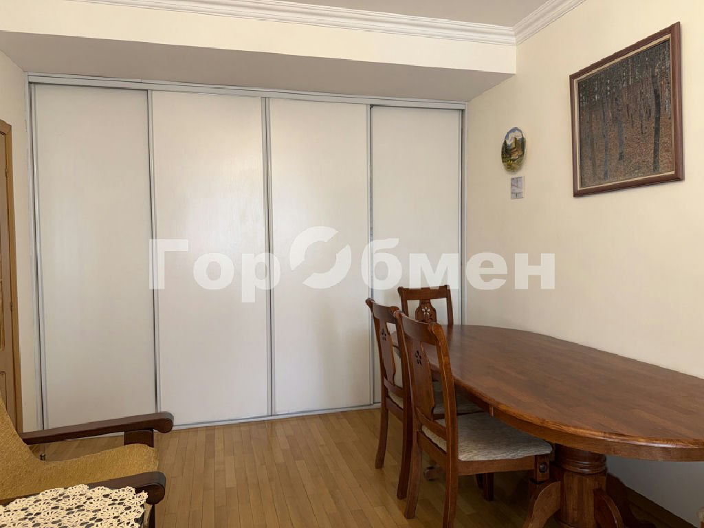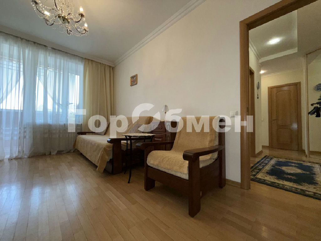 В квартире сделан качественный ремонт с использованием только лицензированных материалов. В комнатах эксклюзивная мебель из массива, паркет, авторские шторы. В гостиной обеденная группа с резными стульями, шкаф-купе, диван и кресло для отдыха, выход на остекленный балкон