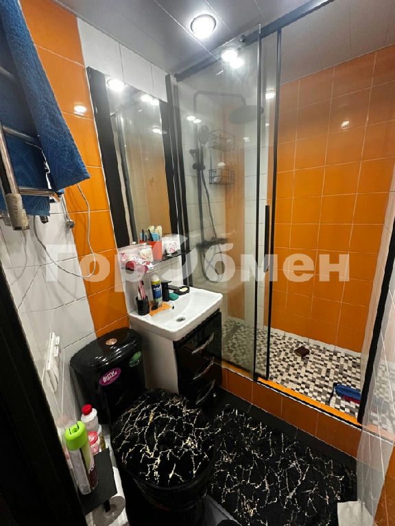 Санузел совмещённый, душевая кабина, современная плитка.