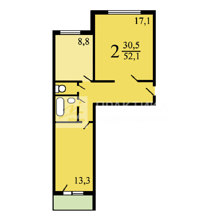 Общая: 52,1 м2