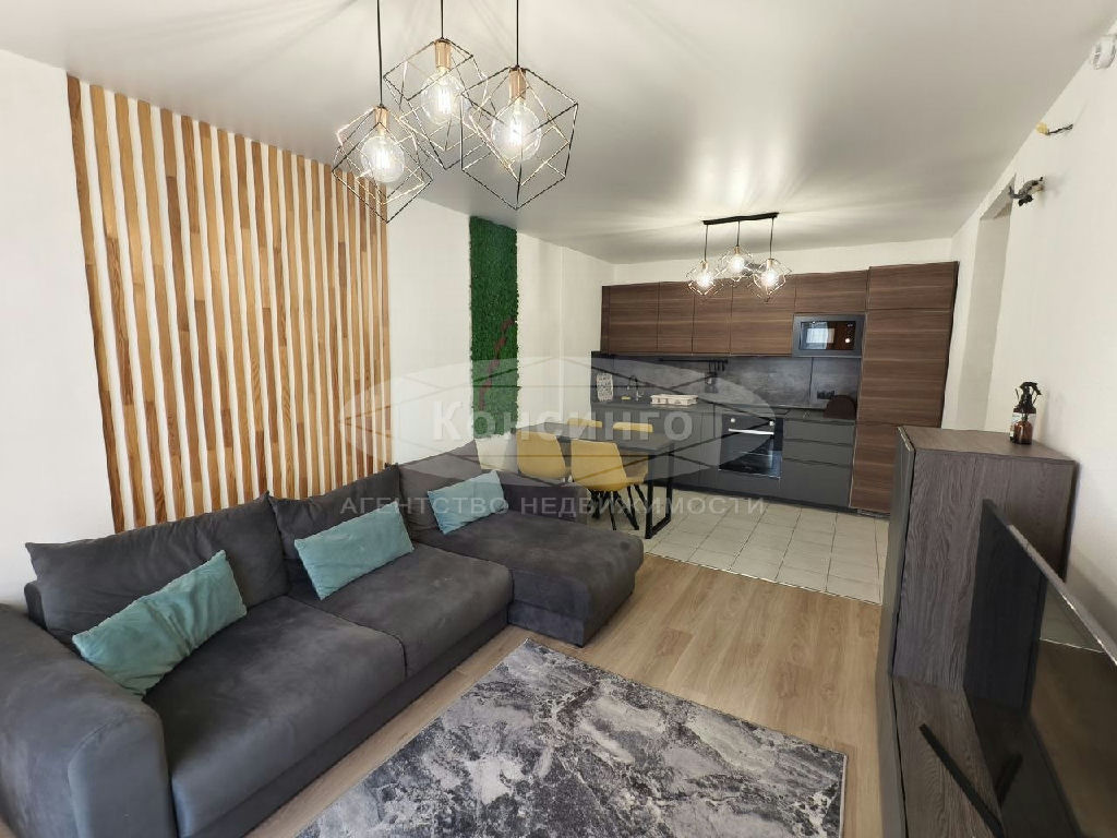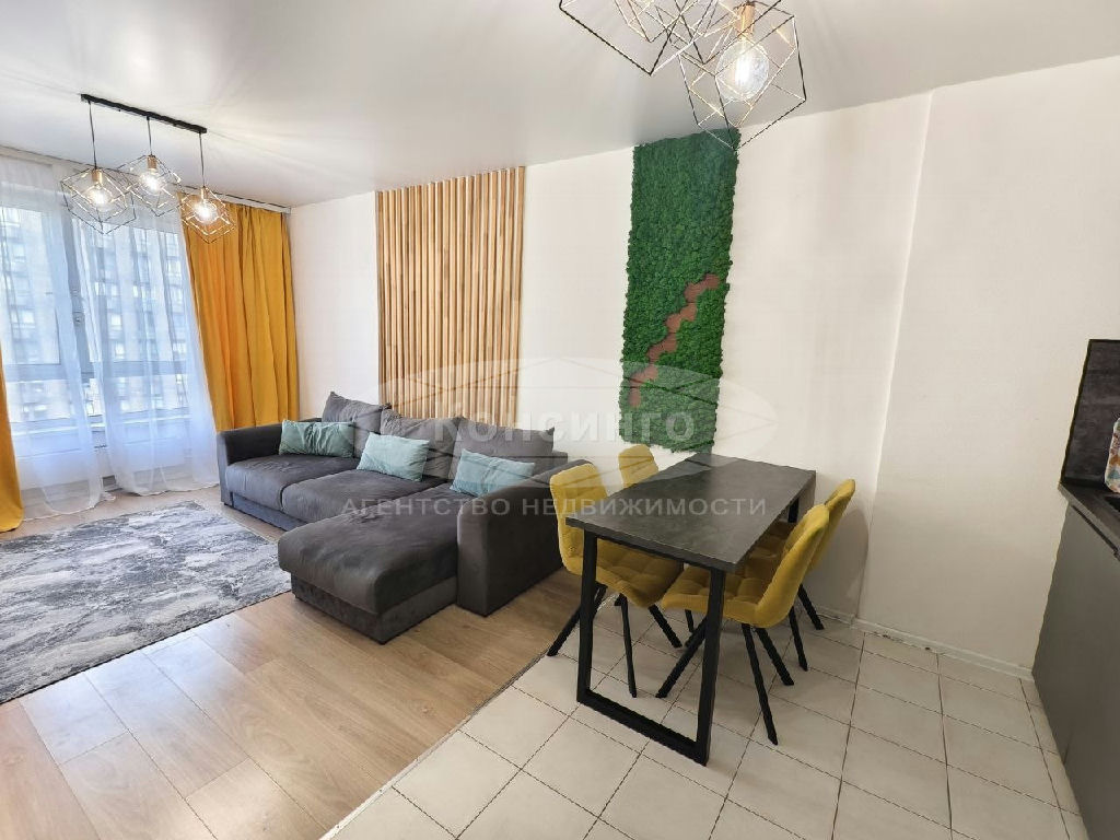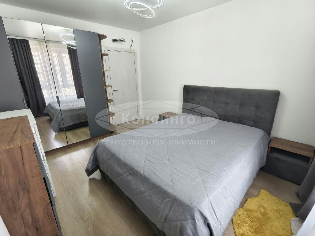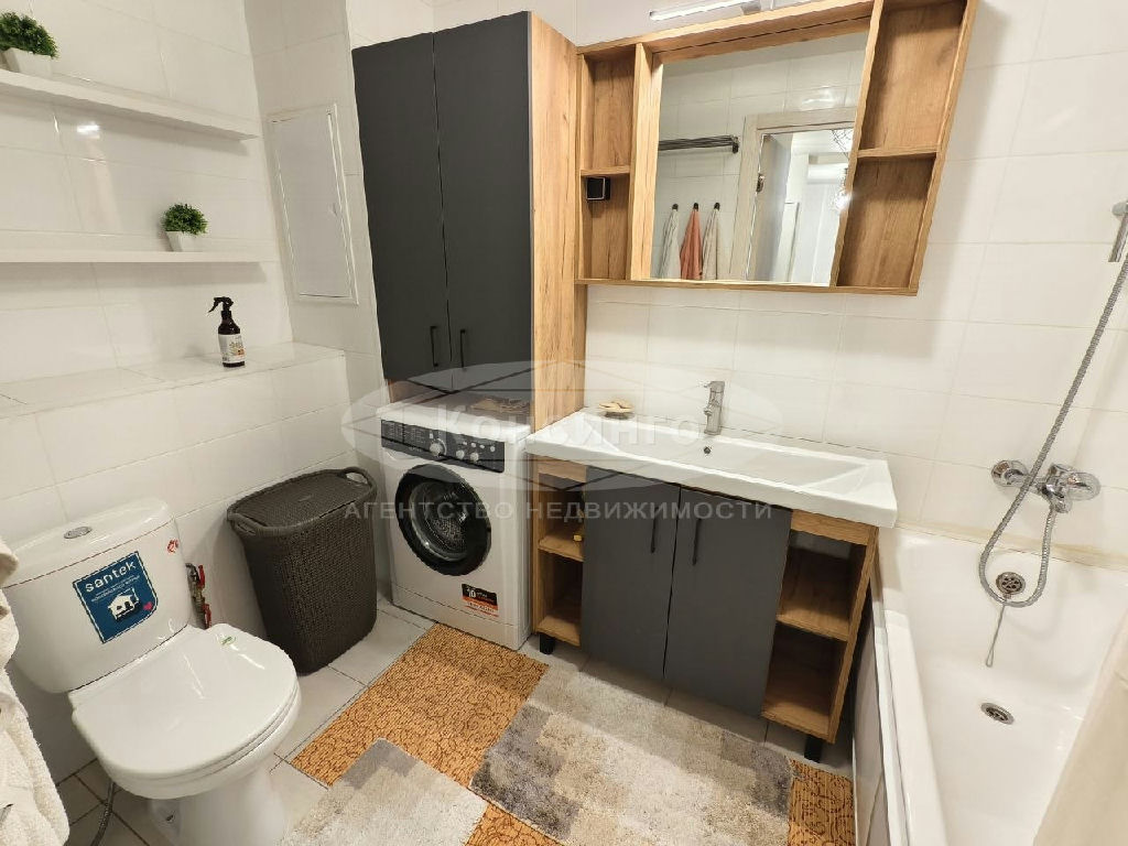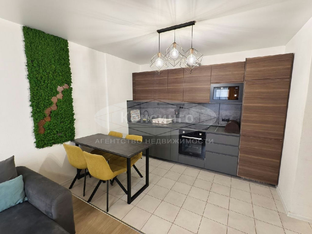Евротрёшка полностью укомплектована корпусной, мягкой мебелью и бытовой техникой, посудомоечной машиной, холодильником Samsung, электроплитой, духовым шкафом Candy, стиральной машиной Indesit, Smart TV, Wi-Fi.
