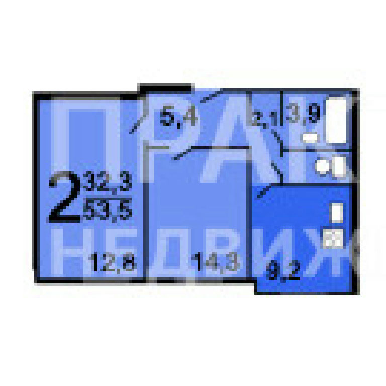Общая: 54 м2
