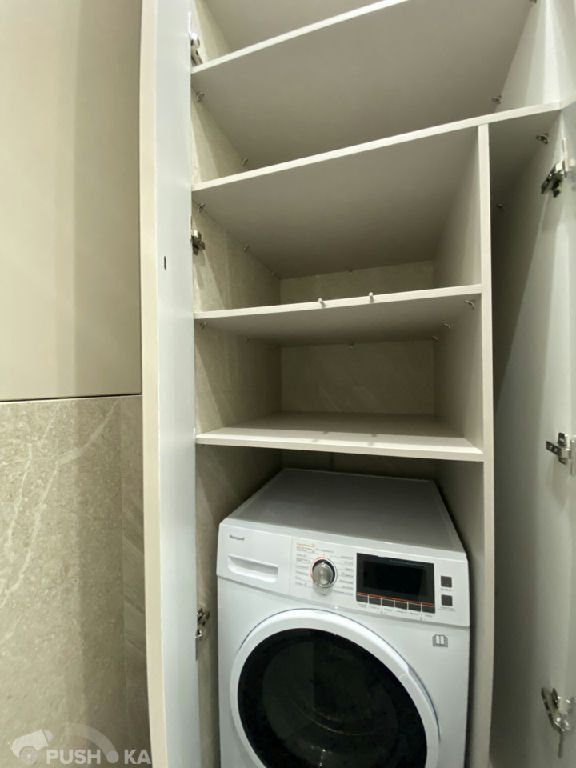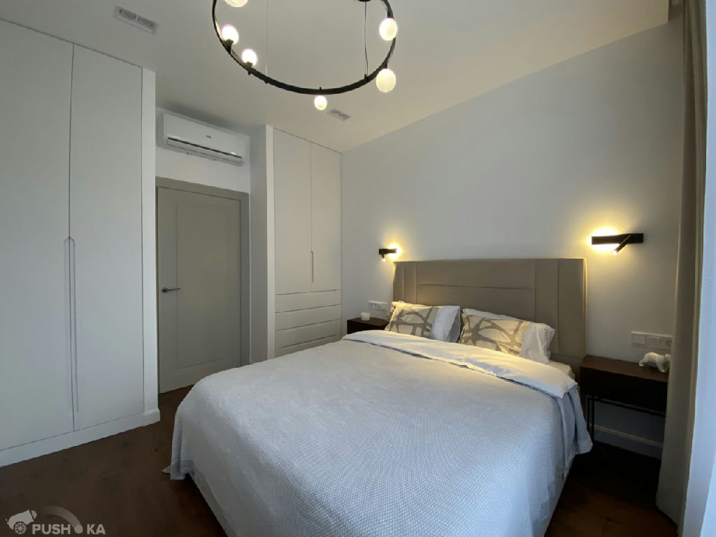 В гостиной есть: мягкая мебель, журнальный столик, комод под телевизор, на кухне: встроенный кухонный гарнитур со встроенной техникой: варочная панель с вытяжкой, духовой шкаф, посудомоечная машина, холодильник, в спальне: двуспальная кровать, встроенные шкафы, тумбочки, комната: встроенные шкафы, полностью оборудованная гардеробная, стиральная машина и прихожая: шкаф, есть бойлер, кондиционеры во всех комнатах. Там, где плитка сделан теплый пол, паркетная доска в комнатах и гостиной.