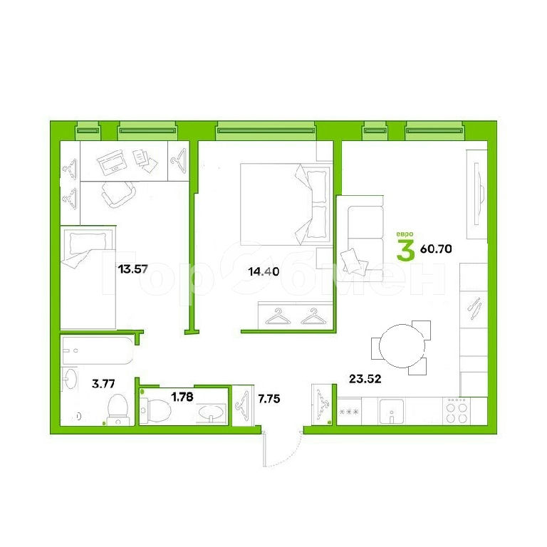 Общая: 60 м2