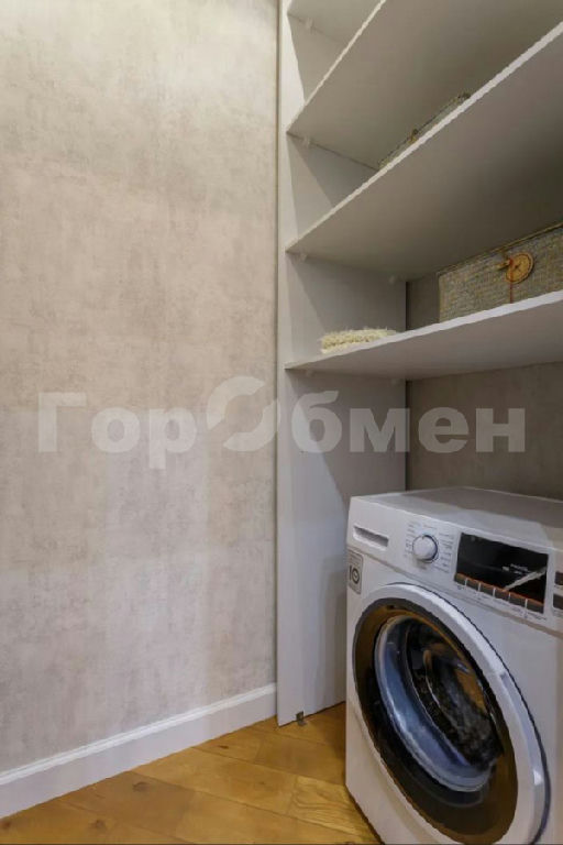 * Кладовка/постирочная со стиральной машиной с сушкой и стеллажами.