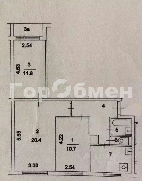 Комнаты: 11.8 10.7 20.4 м2