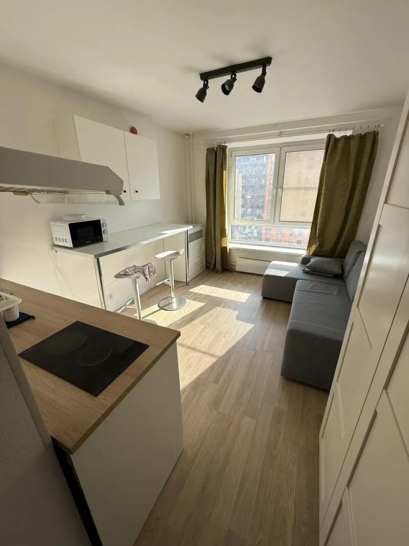 Сдаю на длительный срок студию 18,9 кв.м. Окна выходят во двор, поэтому всегда тихо и спокойно. Меблирована и оснащена всей необходимой бытовой техникой: стиральная машина, холодильник, варочная панель, микроволновая печь, вытяжка. В с/у душевая кабина. Дополнительно оплачиваются вода и свет по счетчикам.