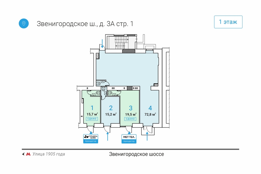 Улица 1905 года, 2 мин. пеш., Street-retail, торг. назн., Звенигородское ш. д.3А, стр.1, площ. 72,8 кв.м., 1-я линия, свободная планировка, h=2,5-3,5м, все центр. гор. коммуник. Высокий рекламный потенциал, места под вывеску. МАП – 550 000 рублей. Компания «Estate Capital». 903-960-70-87. www.ec.ru