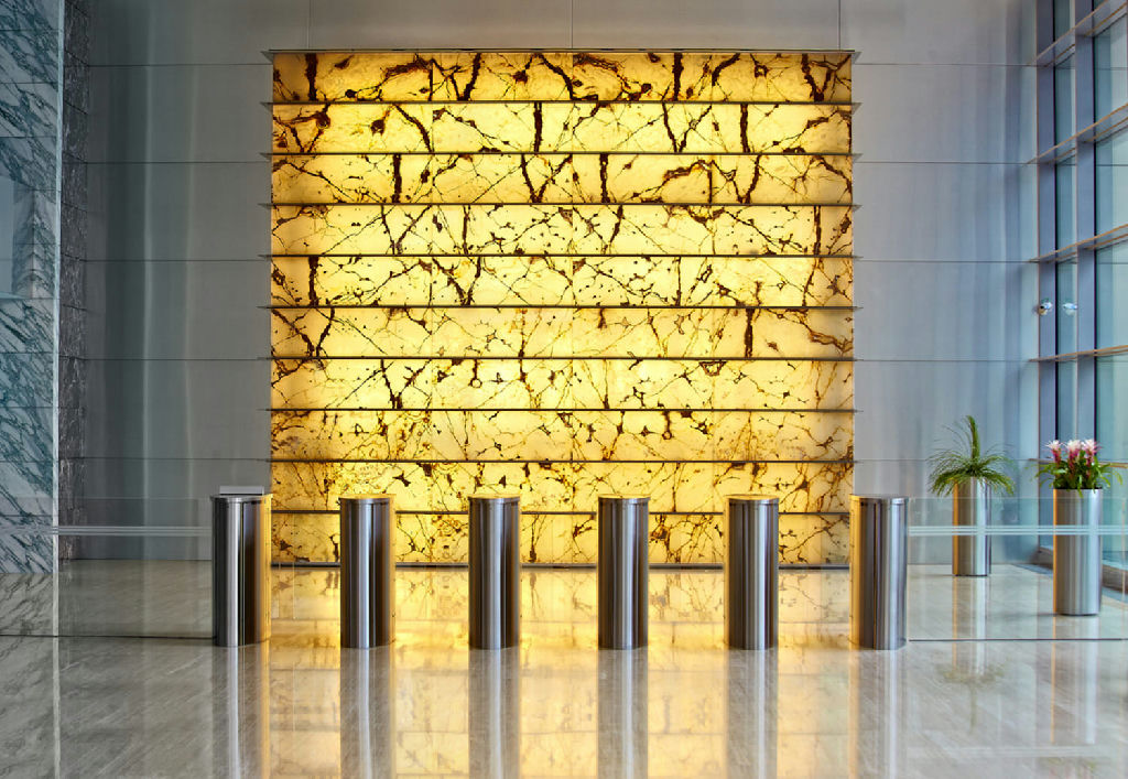 Отделка из мрамора и стекла.