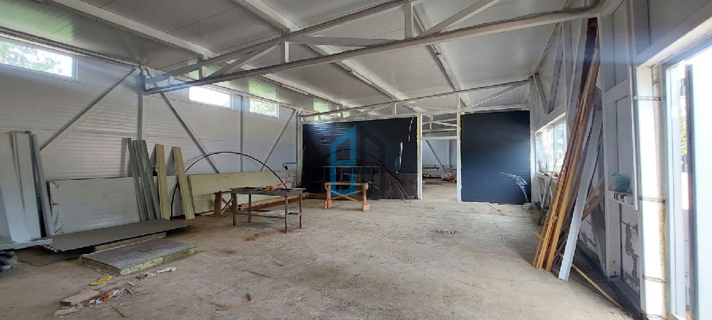 Внутри - есть разделение на две части. Можно исползовать под склад, мастерскую, небольшое производство.