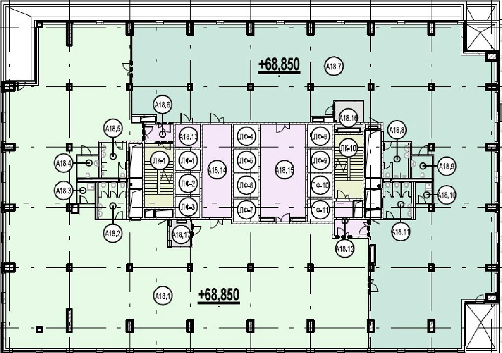 Типовая площадь одного этажа 1720,40 кв.м. Допустимая нагрузка на перекрытия 250-460 кг/кв.м.