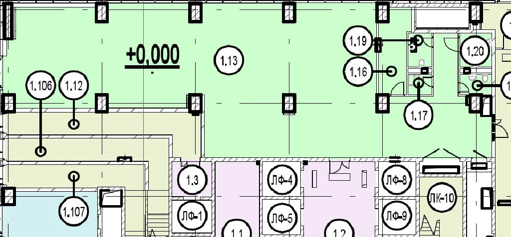 Типовая площадь первого этажа 6684,13 кв.м. Допустимая нагрузка на перекрытия 250-460 кг/кв.м.