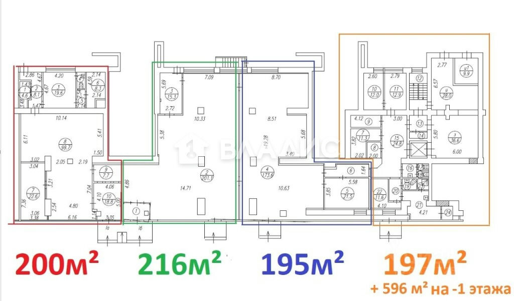 Площадь min: 195 м2