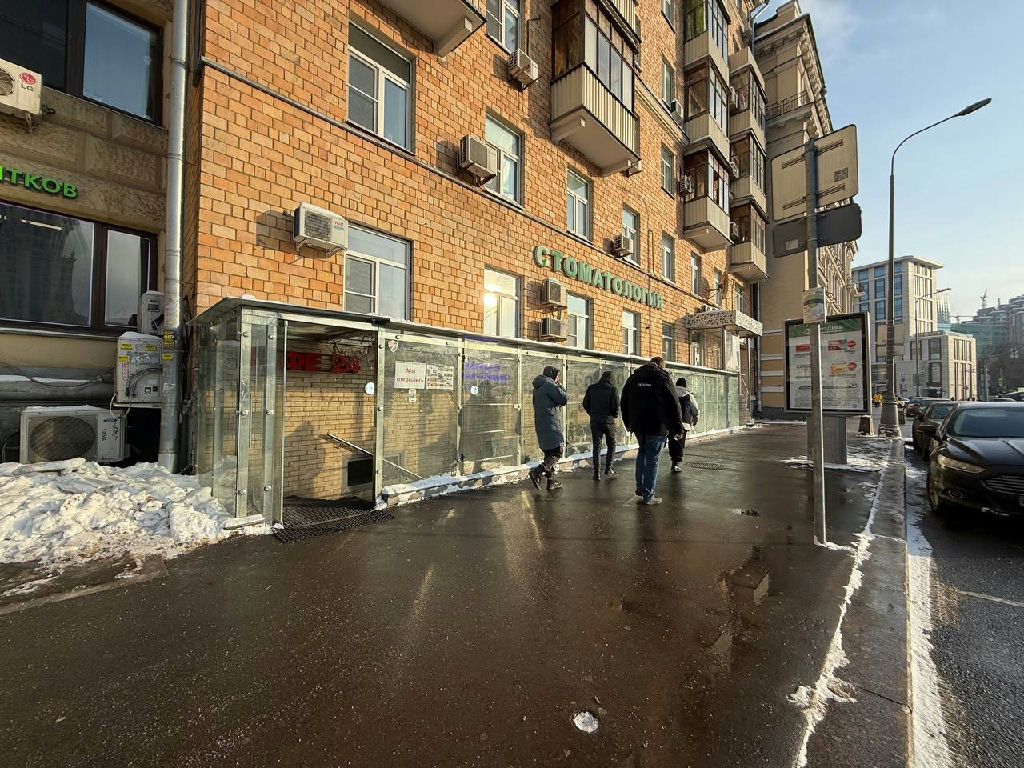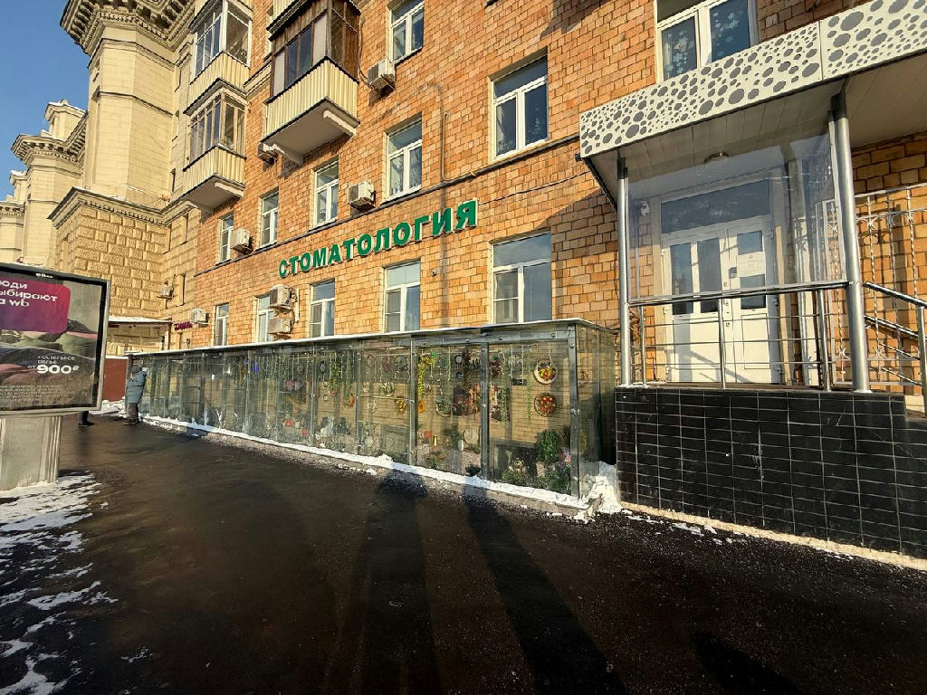 - Яркая стеклянная витрина непосредственно на пешеходном трафике