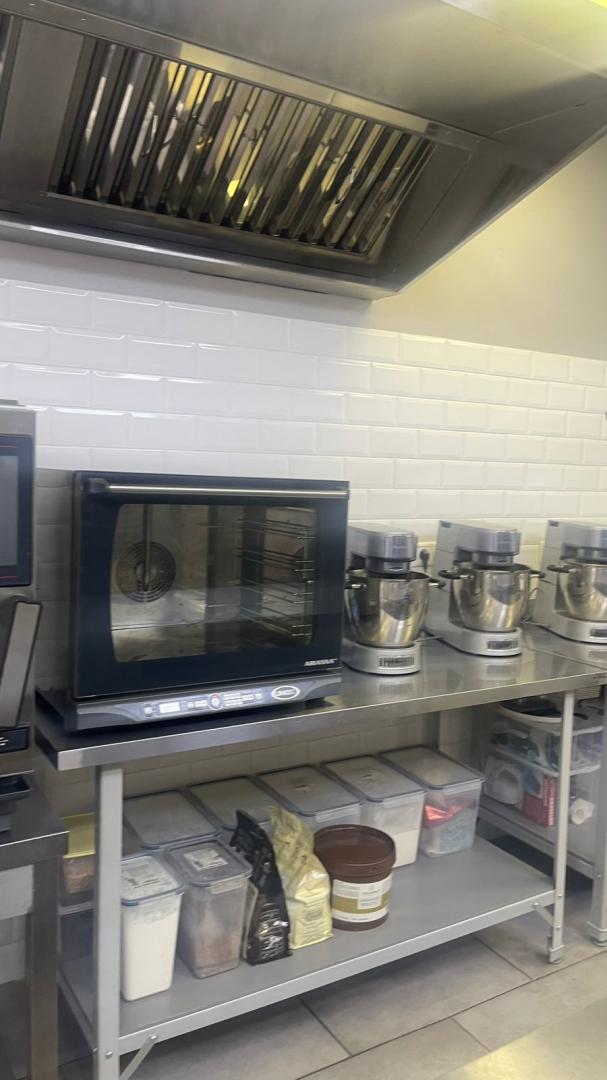 Светлый просторный кондитерский цех ( можно организовать продажу с витрины ) сдается в аренду на длительный срок при условии выкупа оборудования 1 .Печь конвекционная UNOX 4 уровня , 2.Печь конвекционная ARIANNA , 3.Холодильный шкаф СARBOMA, 4.Холодильный шкаф POLAIR, 5.Холодильник ARISTON , 6.Морозильная камера POLAIR 7.4 миксера KENWOOD, 8.Водоумягчитель для UNOX , 9 . 2 микроволнолновые печи SUMSUNG , 10. Посудомоечная машина ELECTROLUX 11.Зонт вытяжной . 12.Водонагреватель накопительный MONLAN 13.Подставка под пароконвектомат 14. Мощные вытяжки на производственную часть, cклад , кабинет и туалет 15. Кассетный кондиционер 16.Приточная система вентиляции (1500м3)с водонагревателем 17.Кондитерский инвентарь 18 Камеры наблюдения 7 шт 19.Мойка односекционная 20.МЕБЕЛЬ Стол с бортом пристенный 5шт , Cтол без борта 5шт , Cтол -купе с ящиками , Противни для печи 6 шт , Шпилька -тележка на 15 уровней , Противни под Арианну , Cтеллажи . Электрическая мощность 40 кВт Цена 3200000 р . Это гораздо меньше суммы , вложенной в оборудование и ремонт .