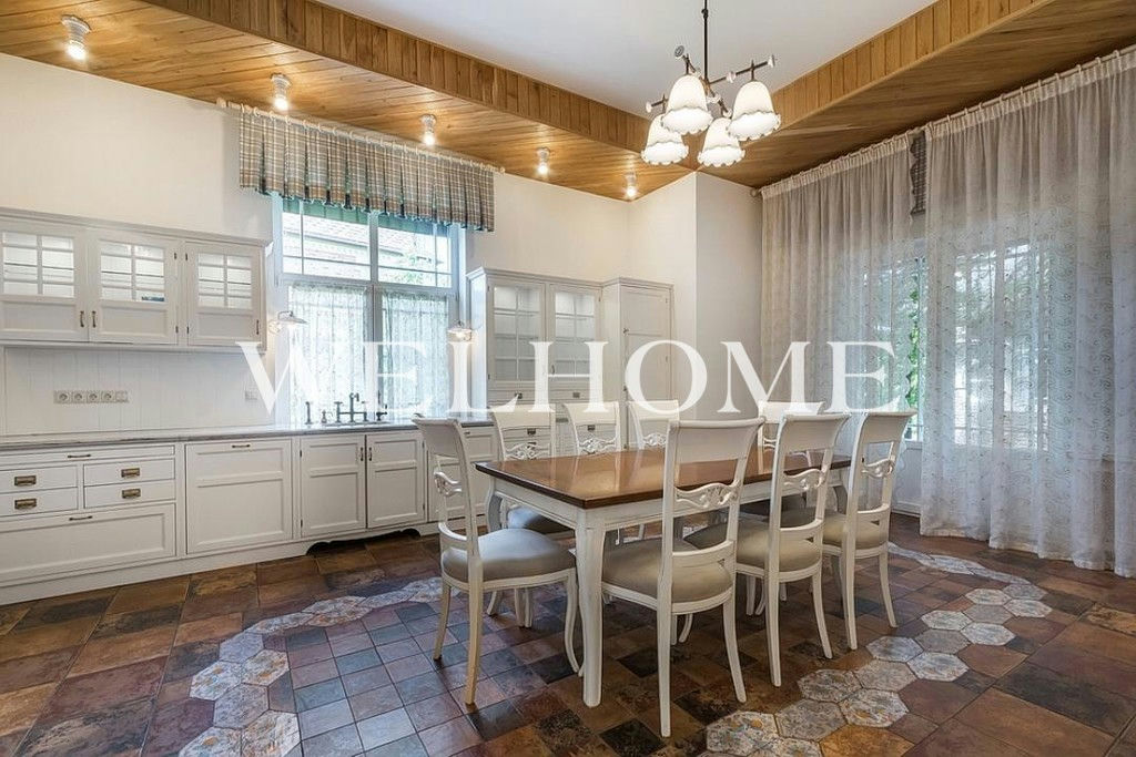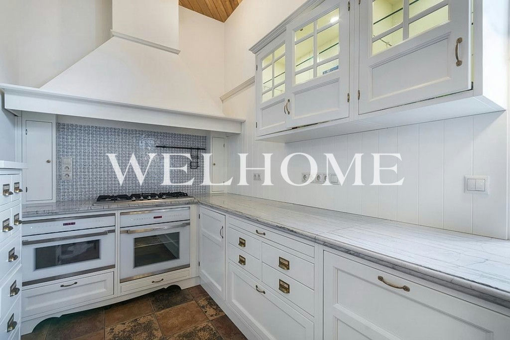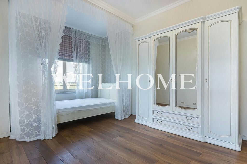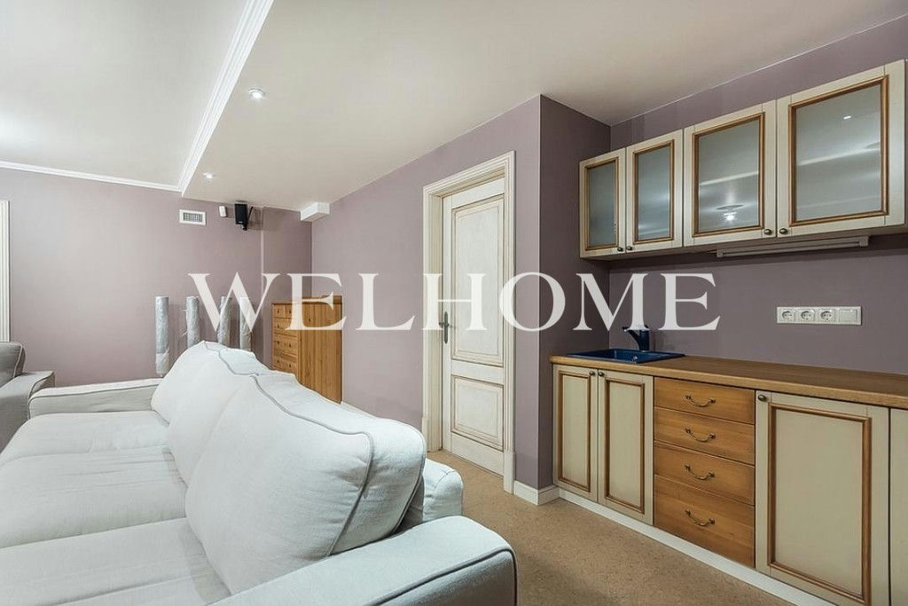 ID объекта на сайте Welhome: ZA-15527. Предлагается в аренду торцевой четырёхуровневый таунхаус площадью 424 кв.м. в премиальном коттеджном посёлке "Ильинка". На придомовой территории размером 7 соток высажены плодовые деревья и кустарники, есть закрытая беседка-барбекю с летней кухней и кладовым помещением, а также уютная уличная зона отдыха с навесом и крытая стоянка на 2 м/м. Есть блок для персонала со своим входом.Дом полностью меблирован, оснащён приточно-вытяжной системой вентиляции и кондиционерами, на каждом этаже установлен встроенный пылесос. Также в доме установлены водяные тёплые полы, спутниковое телевидение, есть система видеонаблюдения и высокоскоростной интернет, дом оборудован системой водоочистки и системой аква-стоп.Цоколь: домашний кинотеатр с кухней, сезонная гардеробная, комната-холодильник, 2 кладовых, котельная, постирочная, с/у; 1 этаж: тамбур, холл, гардеробная, с/у, кухня-столовая с выходом на улицу, гостиная с биокамином, квартира для персонала с кухней, с/у и отдельным входом; 2 этаж: мастер-спальня с гардеробной и ванной комнатой, оснащённой джакузи и душевой кабиной, а также отдельным с/у, спальня с с/у и комната для гостей с с/у и выходом на балкон;Мансарда: спортзал, спальня с с/у, спальня с с/у и кабинет.