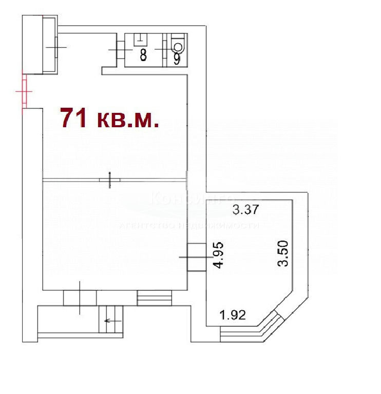 Площадь min: 71 м2
