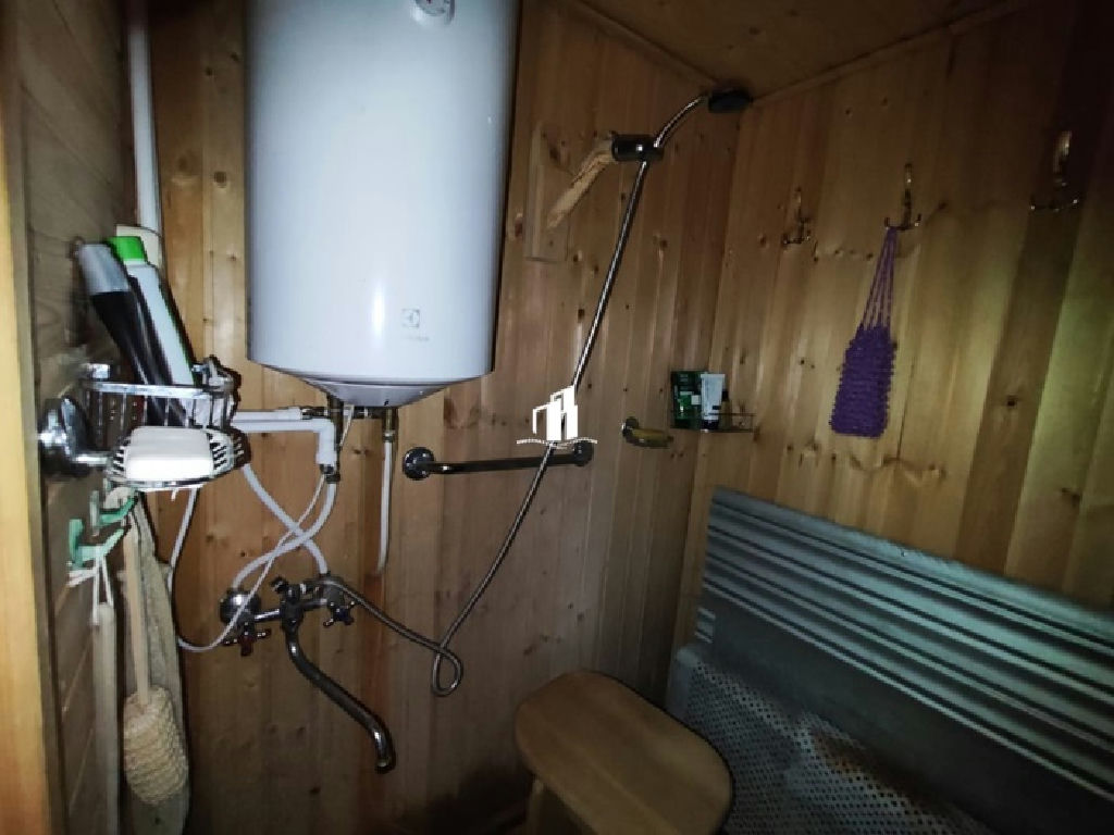 Есть не большая баня, беседка, 2 теплицы, сарай, парковочное место с навесом.