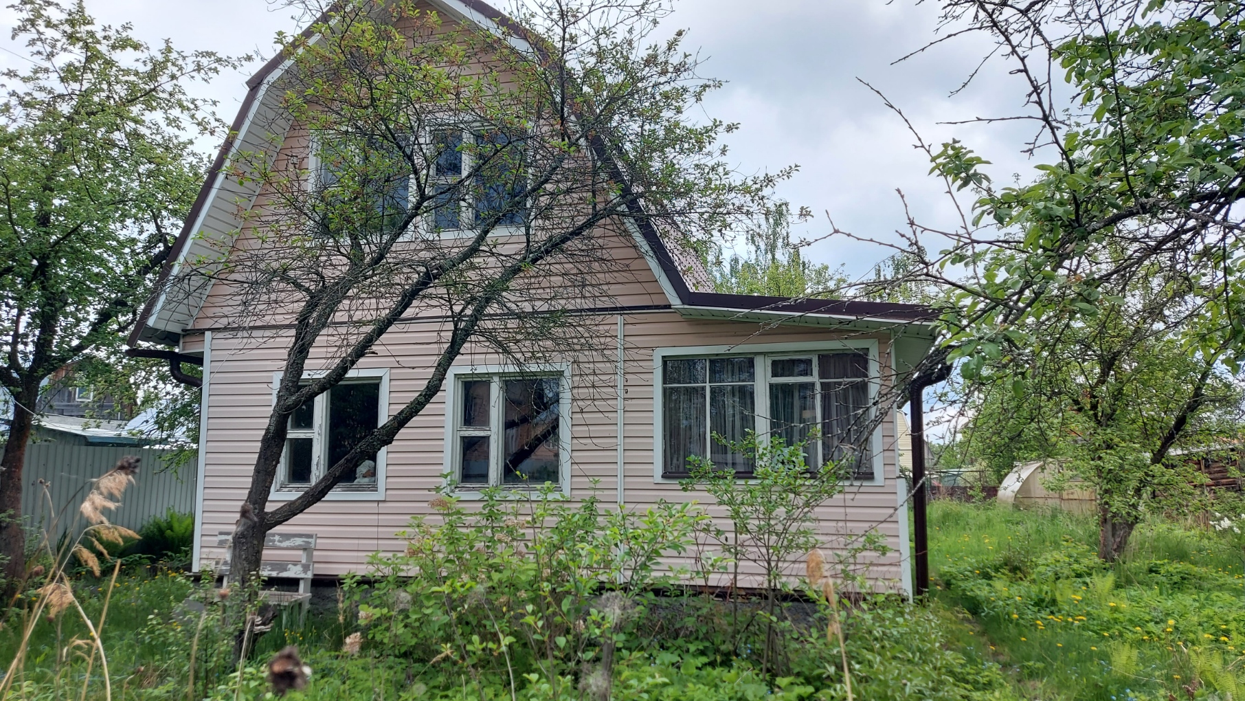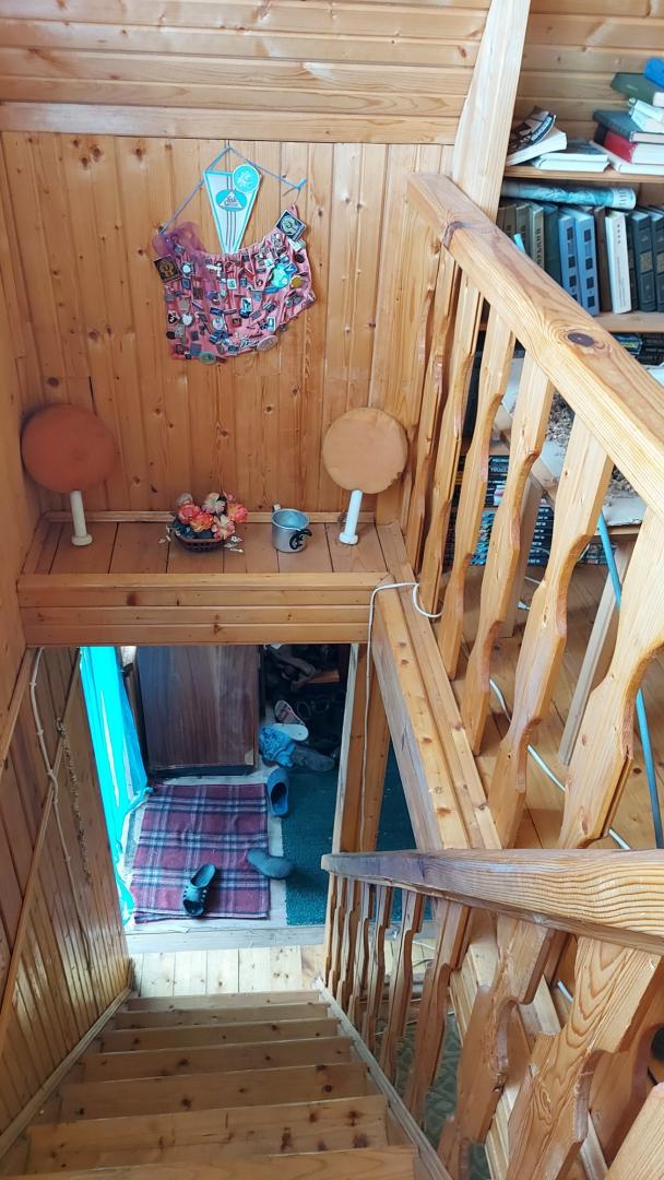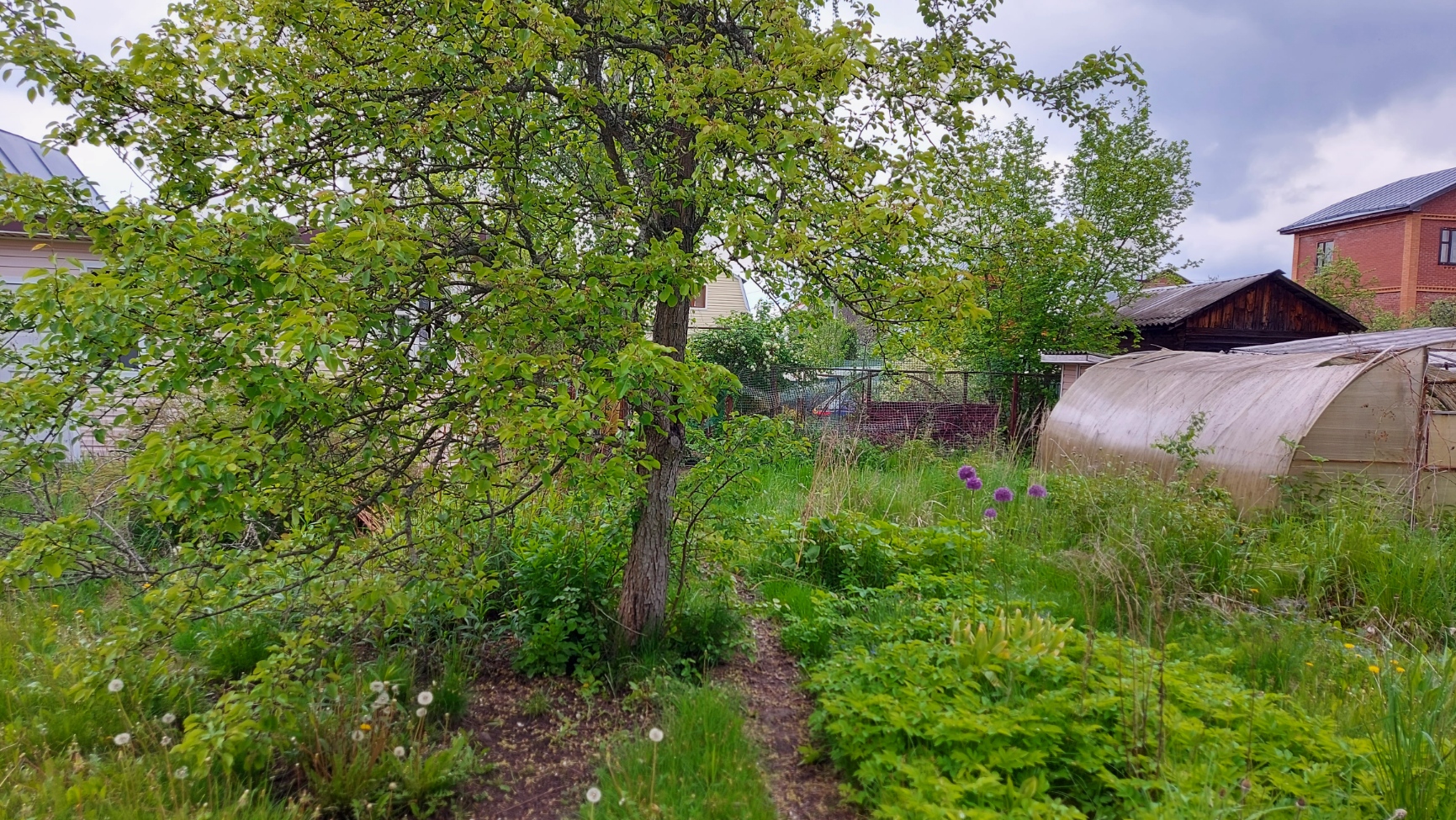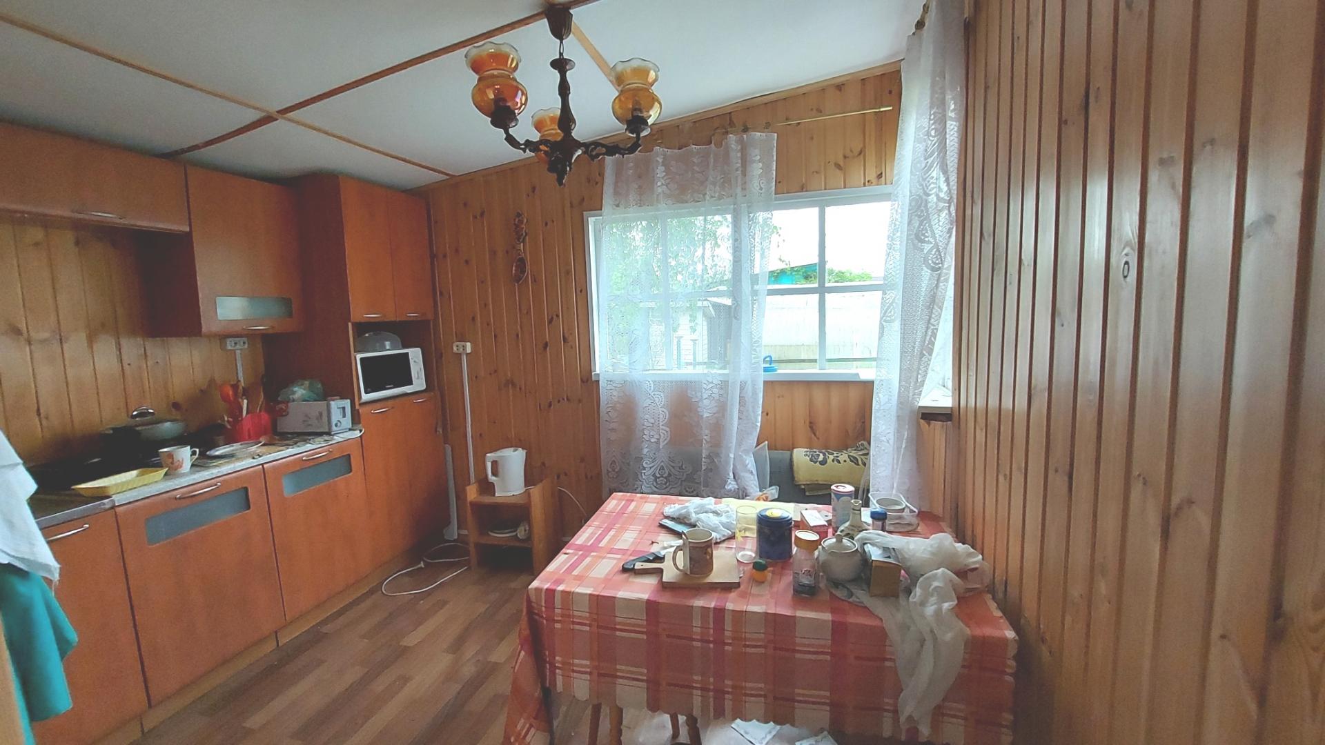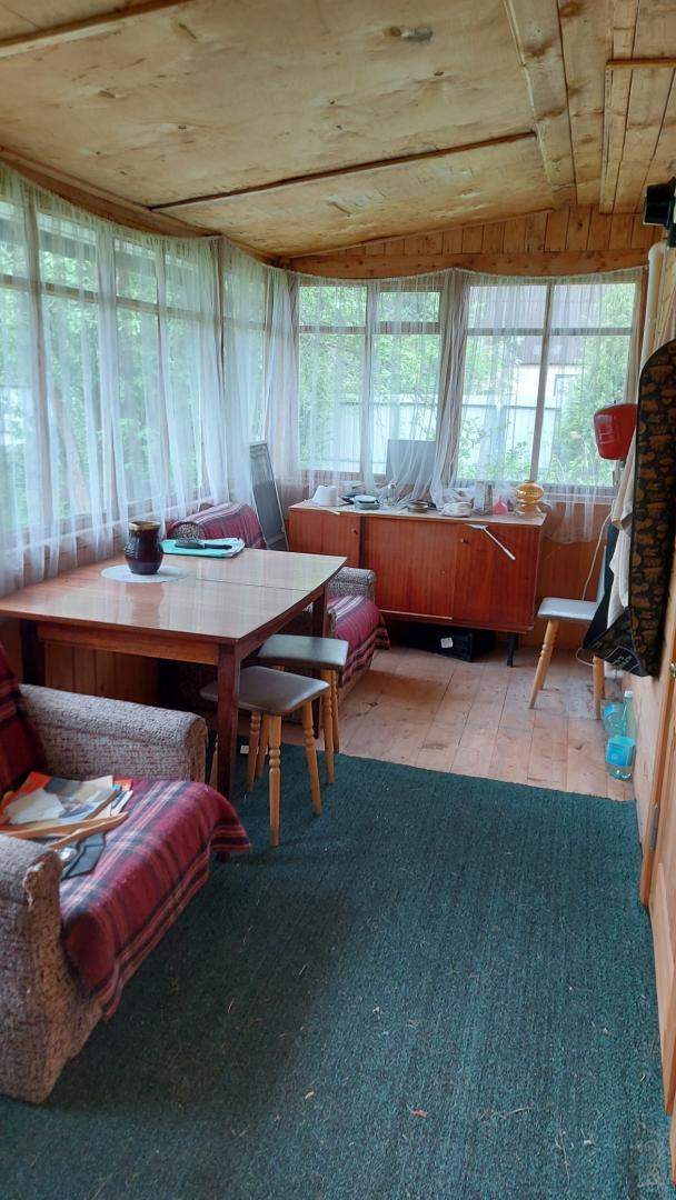 На участке есть строение с кухней и душевой комнатой. Участок ровный, есть плодовые деревья.