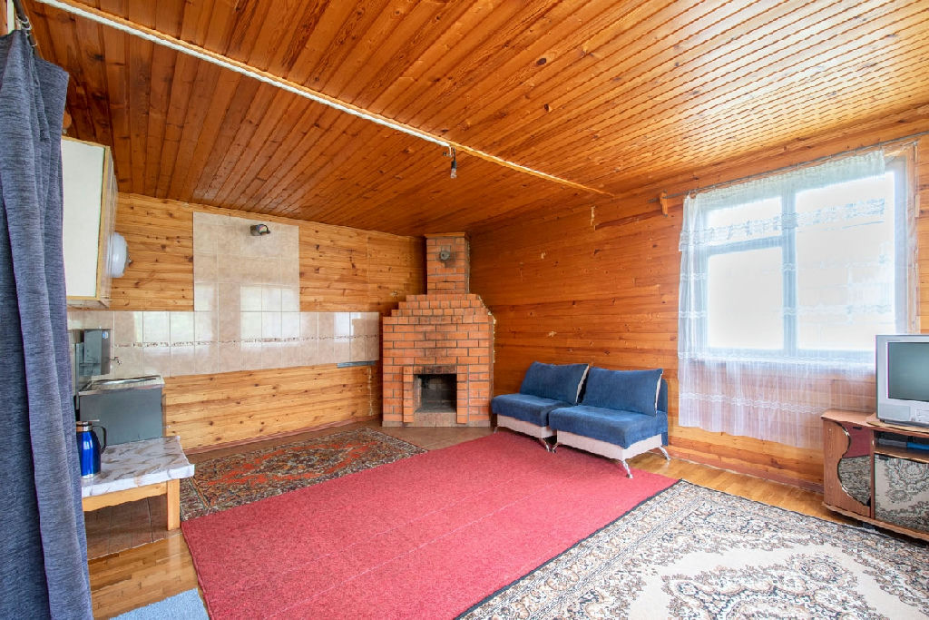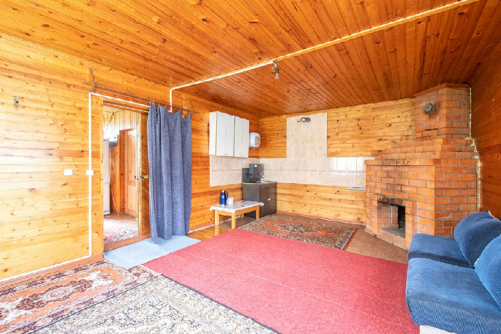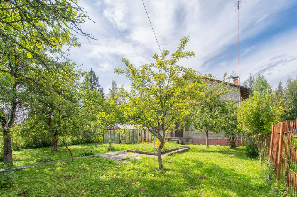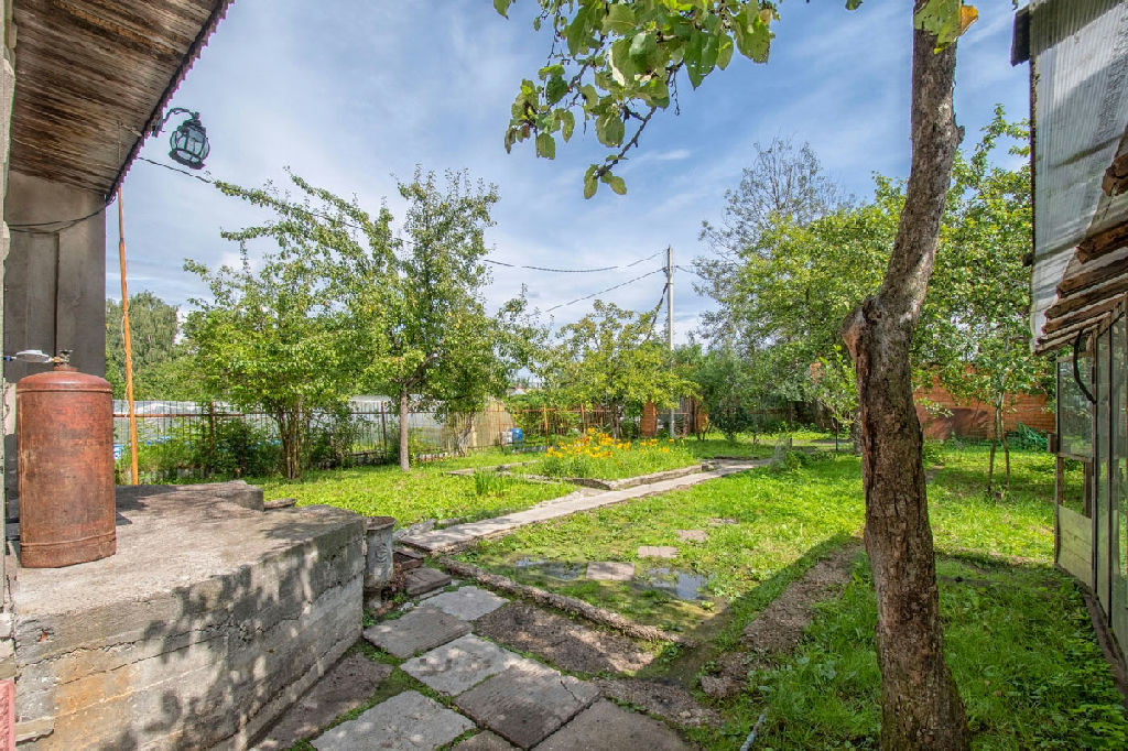 В дом проведено электричество, заведены трубы для воды - осталось только подключить их с улицы, газ- баллонный, но магистральный идет по границе участка, есть возможность подключить, отопление - камин и электрообогреватель , канализация - выгребная яма . На участке растут плодовые деревья. Есть баня , парник , хоз.постройки .
