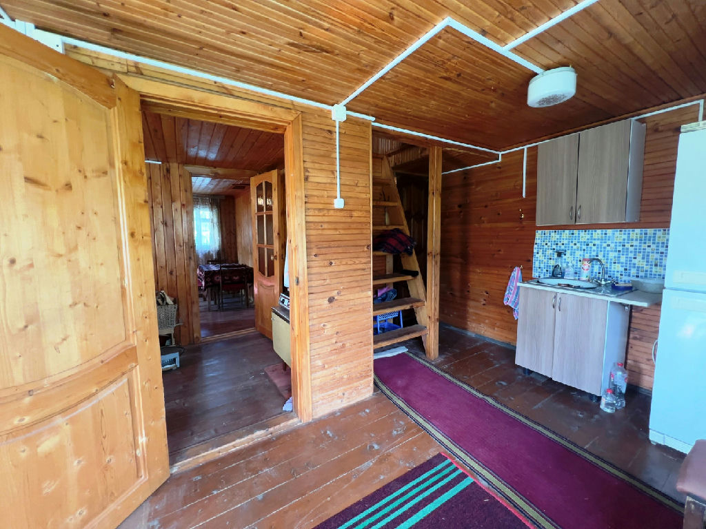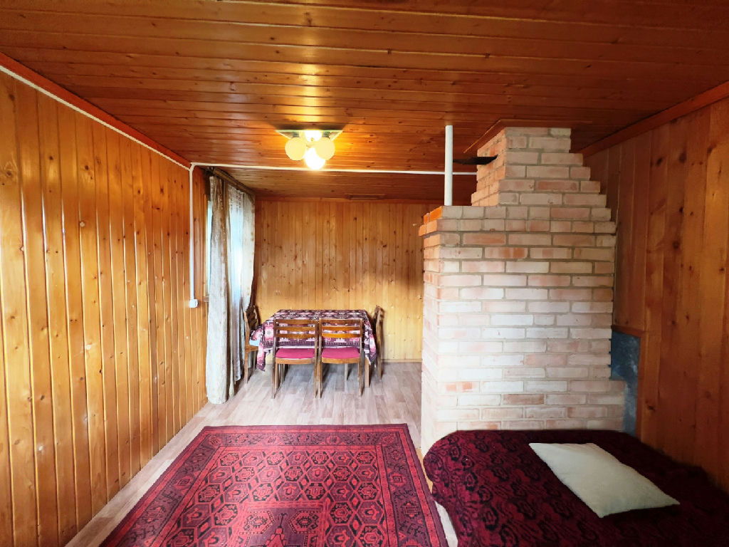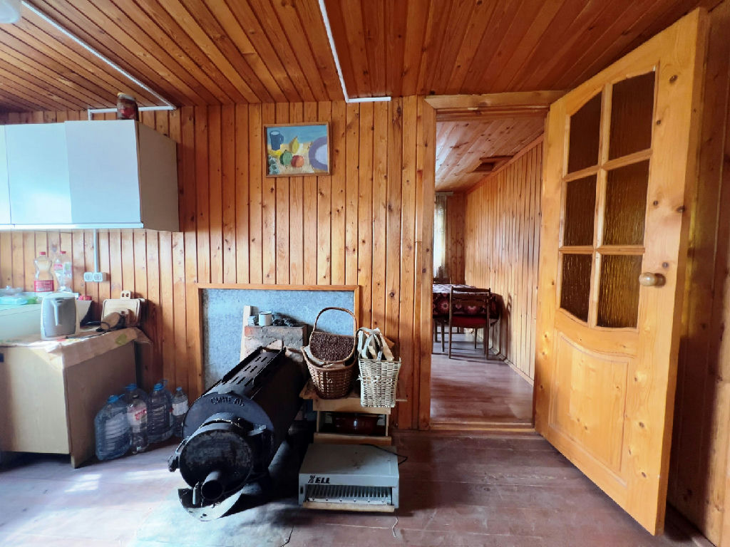 На первой этаже: прихожая, кухня, комната, хозяйственная комната, печь, которая позволяет отапливать дом и пользоваться им до ноября.