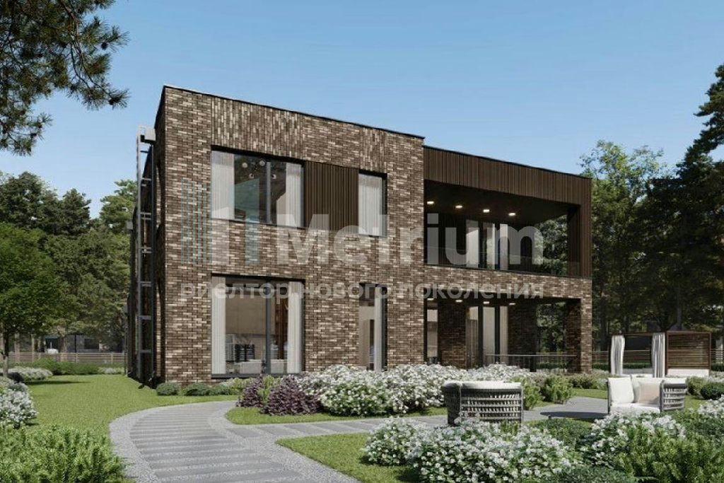За счёт смещения объёмов и разнонаправленности кирпичной кладки экстерьер смотрится представительно и актуально. Функциональная планировка позволяет разместить на первом этаже просторную кухню-гостиную, кабинет, ванную комнату и гардеробную, а также хозяйственные помещения: полностью оборудованную котельную и кладовую. В зоне гостиной предусмотрено место для установки камина, здесь же находится выход на личную террасу. На втором этаже расположены мастер-спальня, две детские, а также две гардеробные и ванные комнаты.