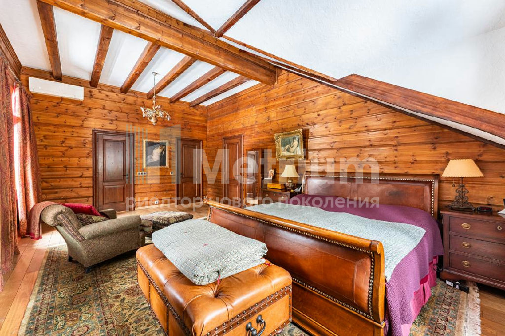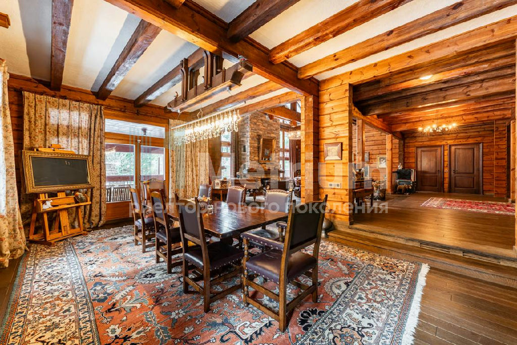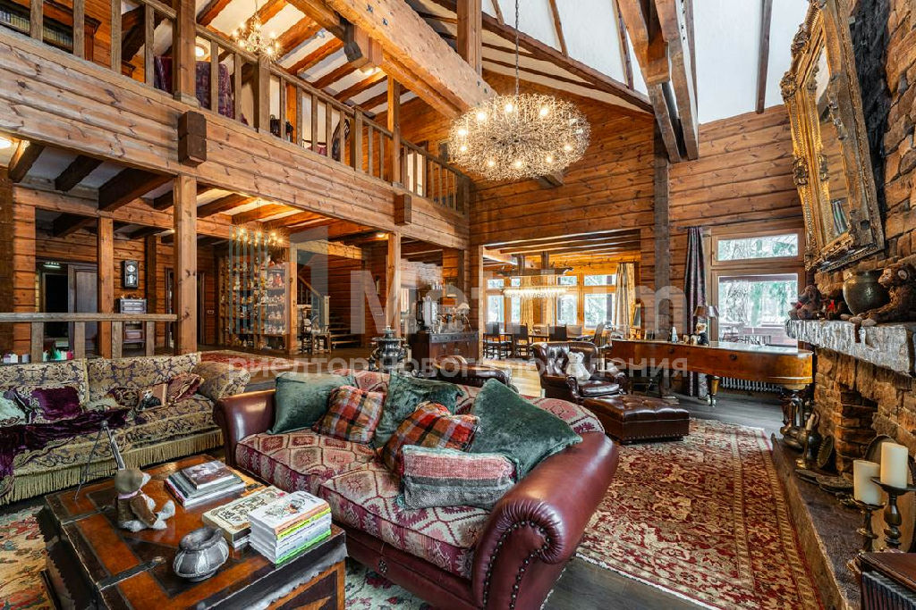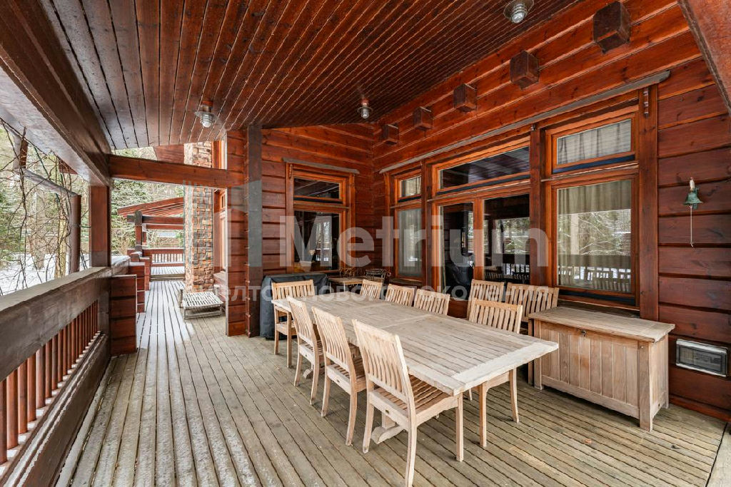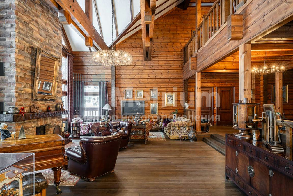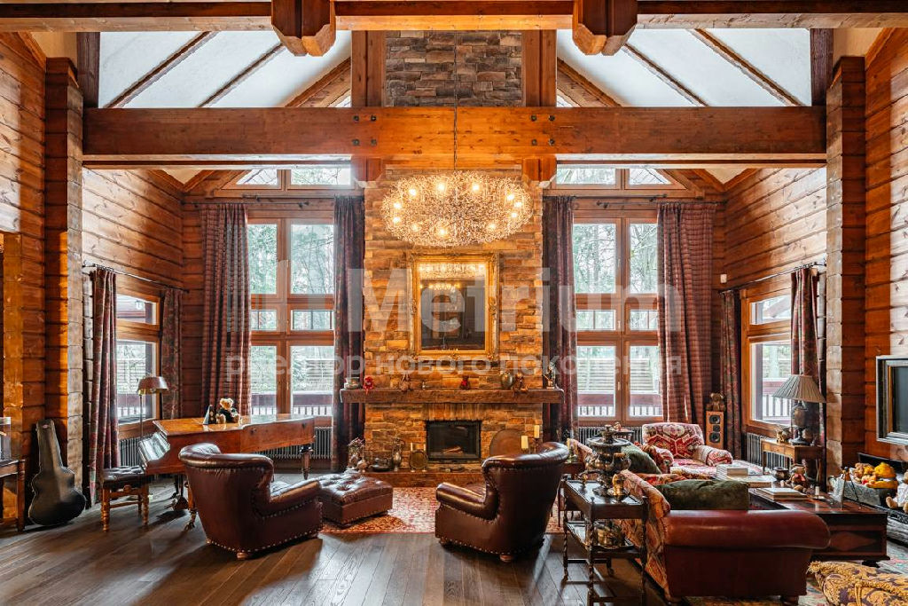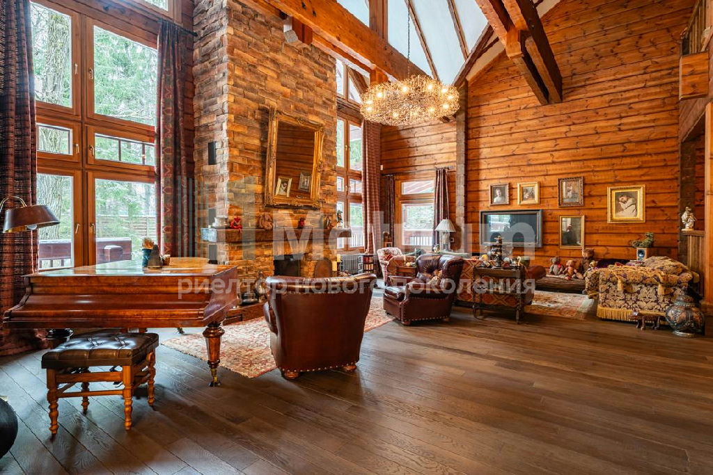 Коттедж с 4-мя спальнями, общей площадью 600 кв.м, расположен на живописном лесном участке 52 сотки. Дом, в котором можно отдыхать душой и телом, благодаря уникальному интерьеру в едином загородном стиле, по проекту известного дизайнера Мурата Сахтарьек. Изюминкой дома является великолепная гостиная, которую украшает австрийский рояль конца XIX века. Вся мебель и предметы декора представлены известными производителями: люстра от "Anthologie Quartet", стол - "Ralph Lauren", кресло от "Henredon", стулья - "Andy Tornton", сервировочный столик - "Roche Bobois", диваны от "English Interiors". Большие окна, высокие потолки (до 5.5 метров в гостиной), второй свет в гостиной делают коттедж очень светлым. В доме оборудована спа-зона с сауной, для полного расслабления, и спортивный зал. Также предусмотрен блок для персонала с отдельным входом, где есть кухня, гостиная и спальня.
