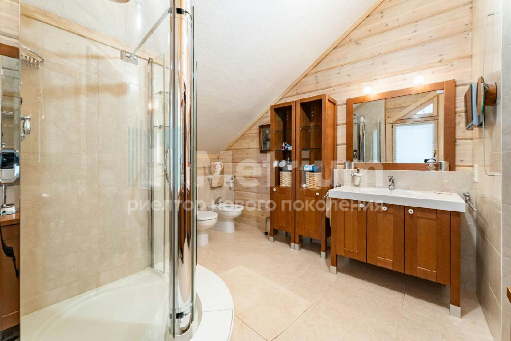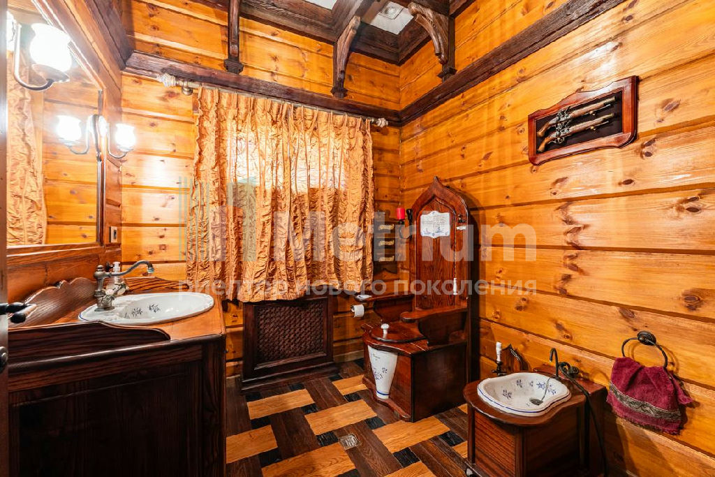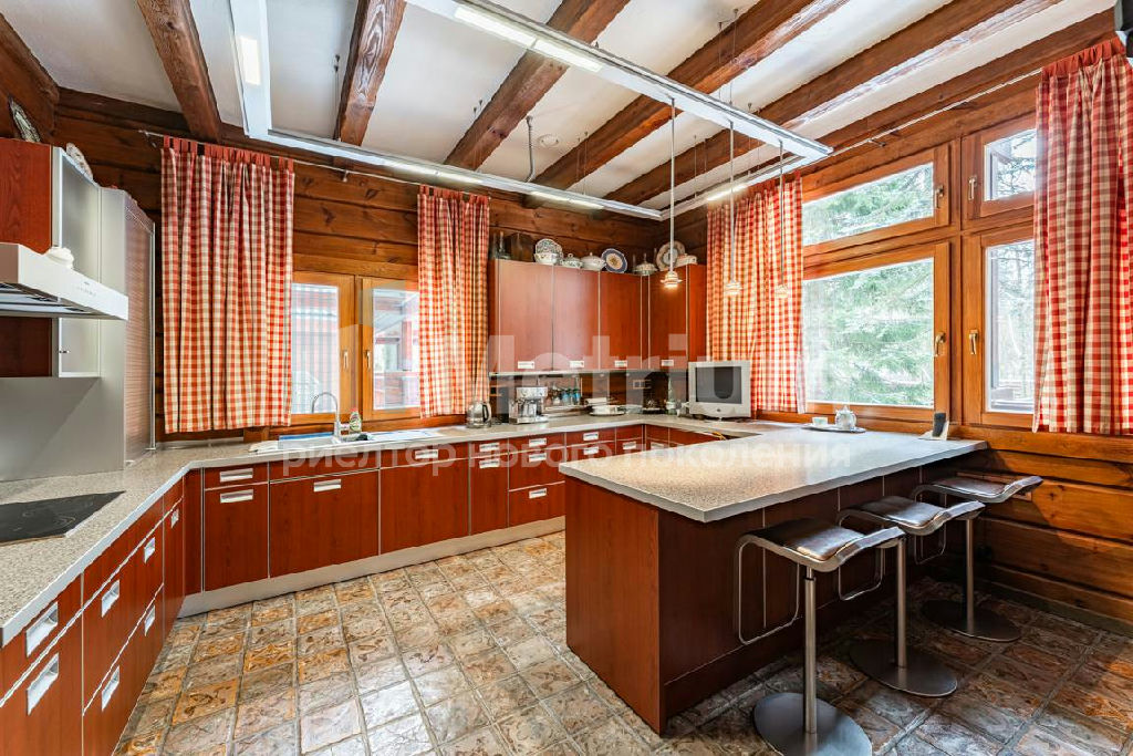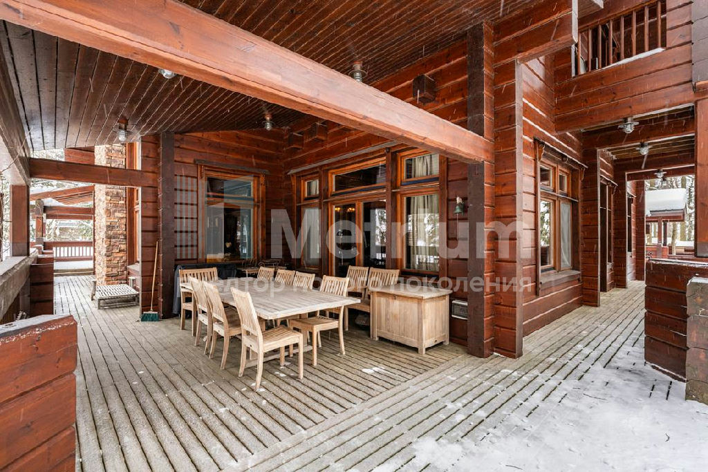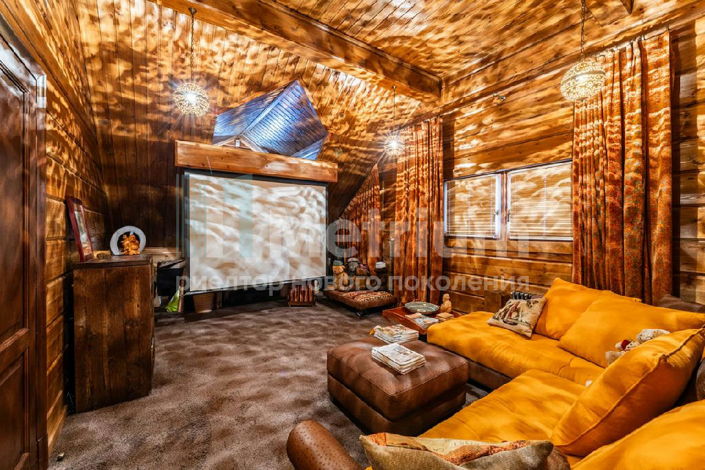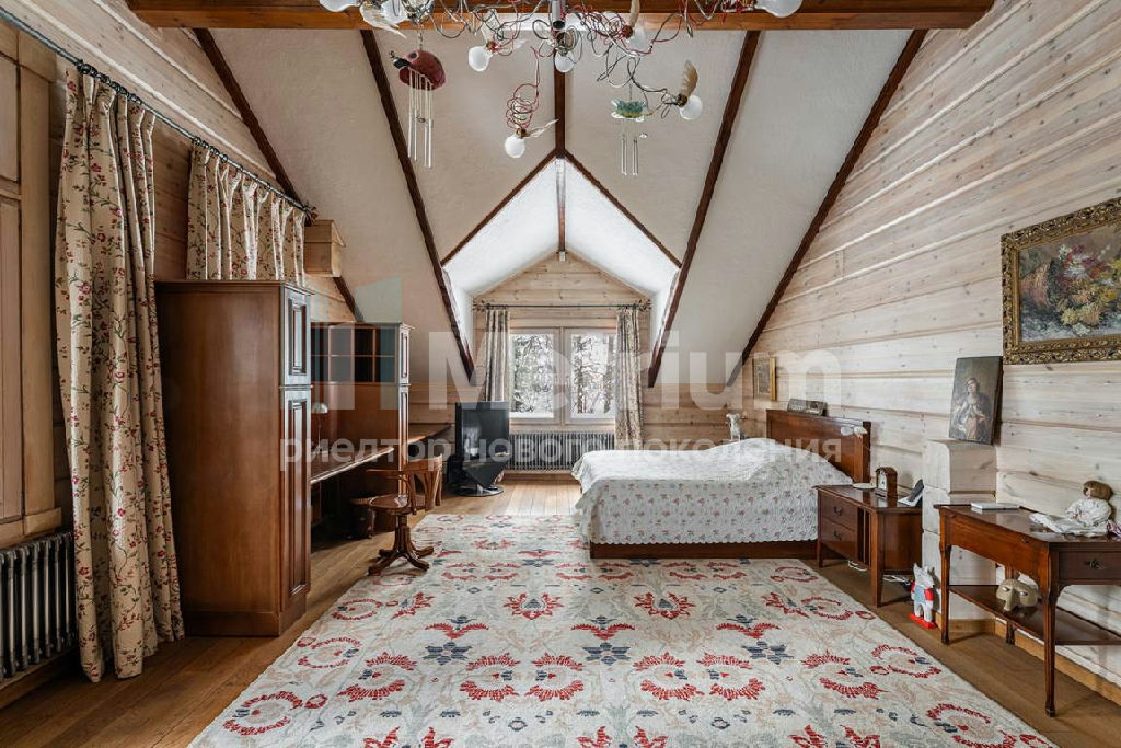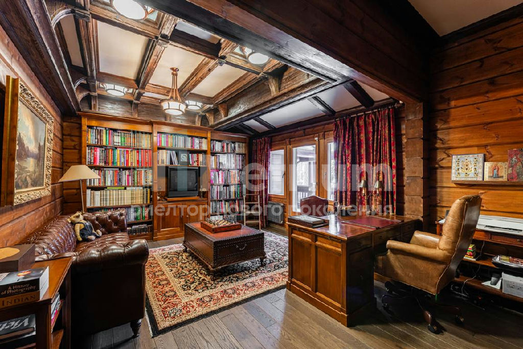 Коттедж с 4-мя спальнями, общей площадью 600 кв.м, расположен на живописном лесном участке 52 сотки. Дом, в котором можно отдыхать душой и телом, благодаря уникальному интерьеру в едином загородном стиле, по проекту известного дизайнера Мурата Сахтарьек. Изюминкой дома является великолепная гостиная, которую украшает австрийский рояль конца XIX века. Вся мебель и предметы декора представлены известными производителями: люстра от "Anthologie Quartet", стол - "Ralph Lauren", кресло от "Henredon", стулья - "Andy Tornton", сервировочный столик - "Roche Bobois", диваны от "English Interiors". Большие окна, высокие потолки (до 5.5 метров в гостиной), второй свет в гостиной делают коттедж очень светлым. В доме оборудована спа-зона с сауной, для полного расслабления, и спортивный зал. Также предусмотрен блок для персонала с отдельным входом, где есть кухня, гостиная и спальня.