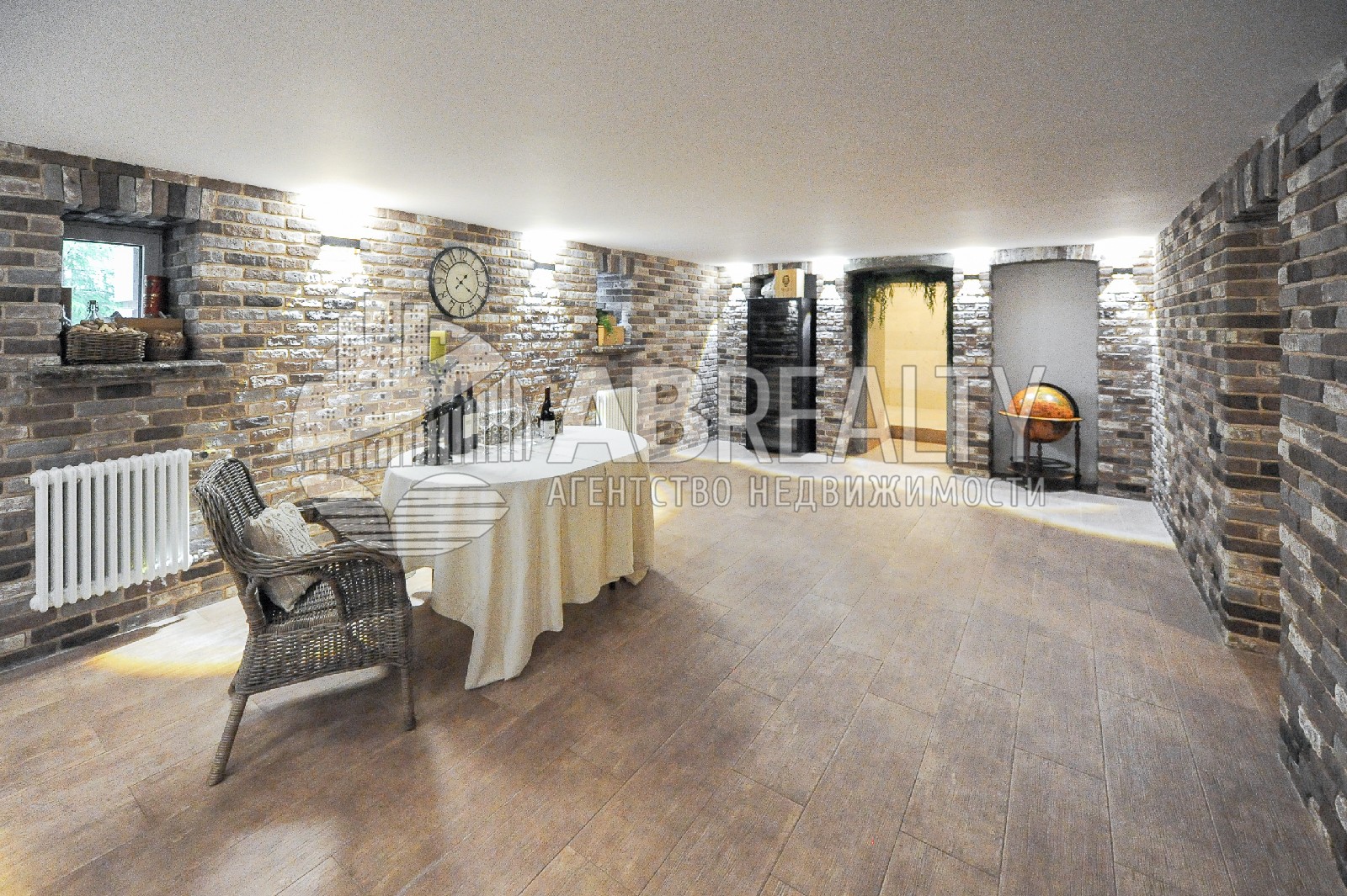 Цокольный этаж: бильярдная, кабинет с ванной, винный погреб. Домашний кинотеатр. Технич. комнаты: постирочная, кладовая, котельная, щитовая.
