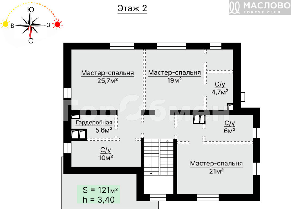 - высота потолка: 3,40 м