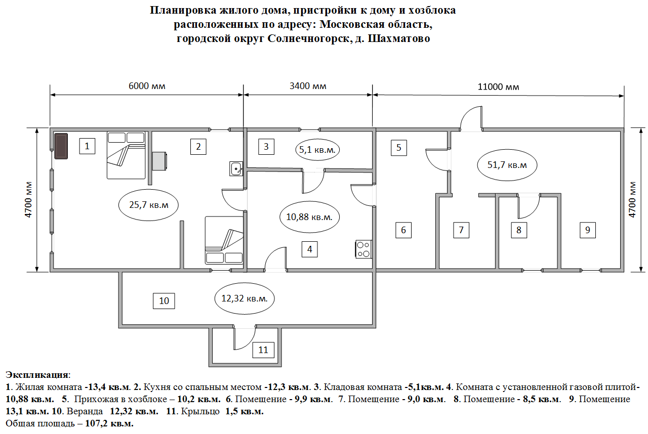 - дом с пристройками, общей площадью 107,2 кв.м.