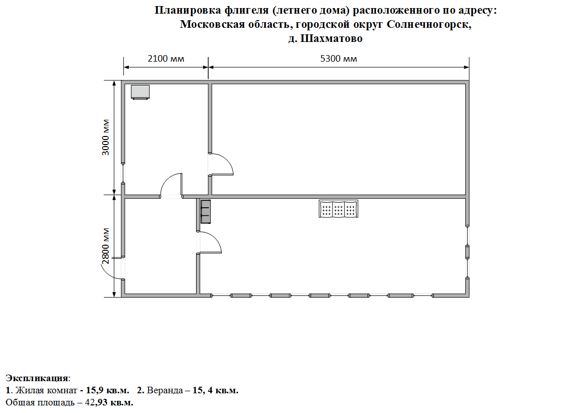 - флигель (летннй дом) общей площадью – 43,0 кв.м.