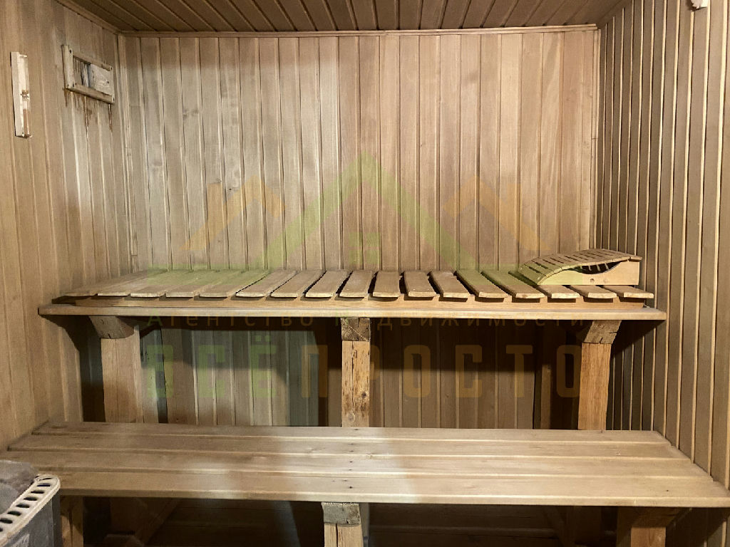Дополнительные строения: Баня из сруба, 1-й этаж парная с зоной для отдыха и камином, 2-й этаж бильярдная. Гараж на одно машиноместо с погребом.