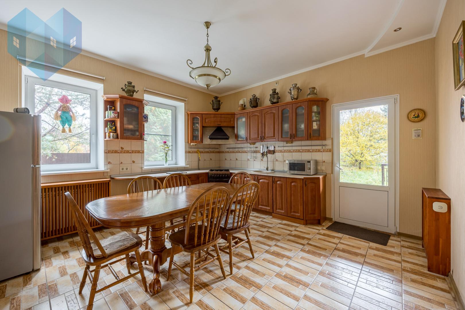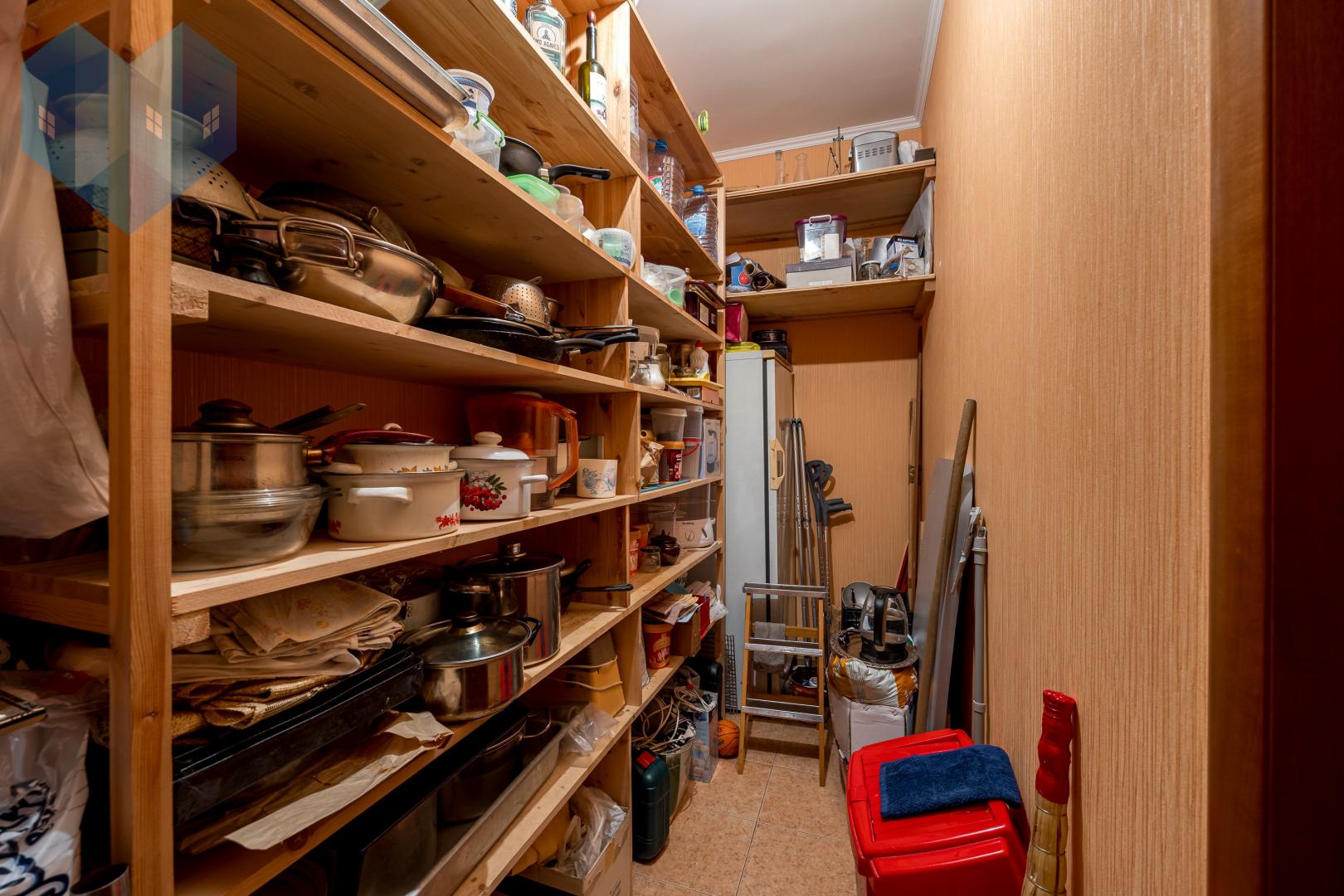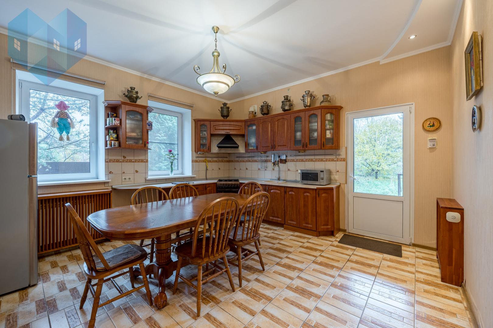 В доме установлены качественные стеклопакеты, сохраняющие тепло и тишину. На кухне есть удобное подсобное помещение в виде отдельной комнаты со входом в просторный подвал — идеальное место для хранения домашних заготовок.