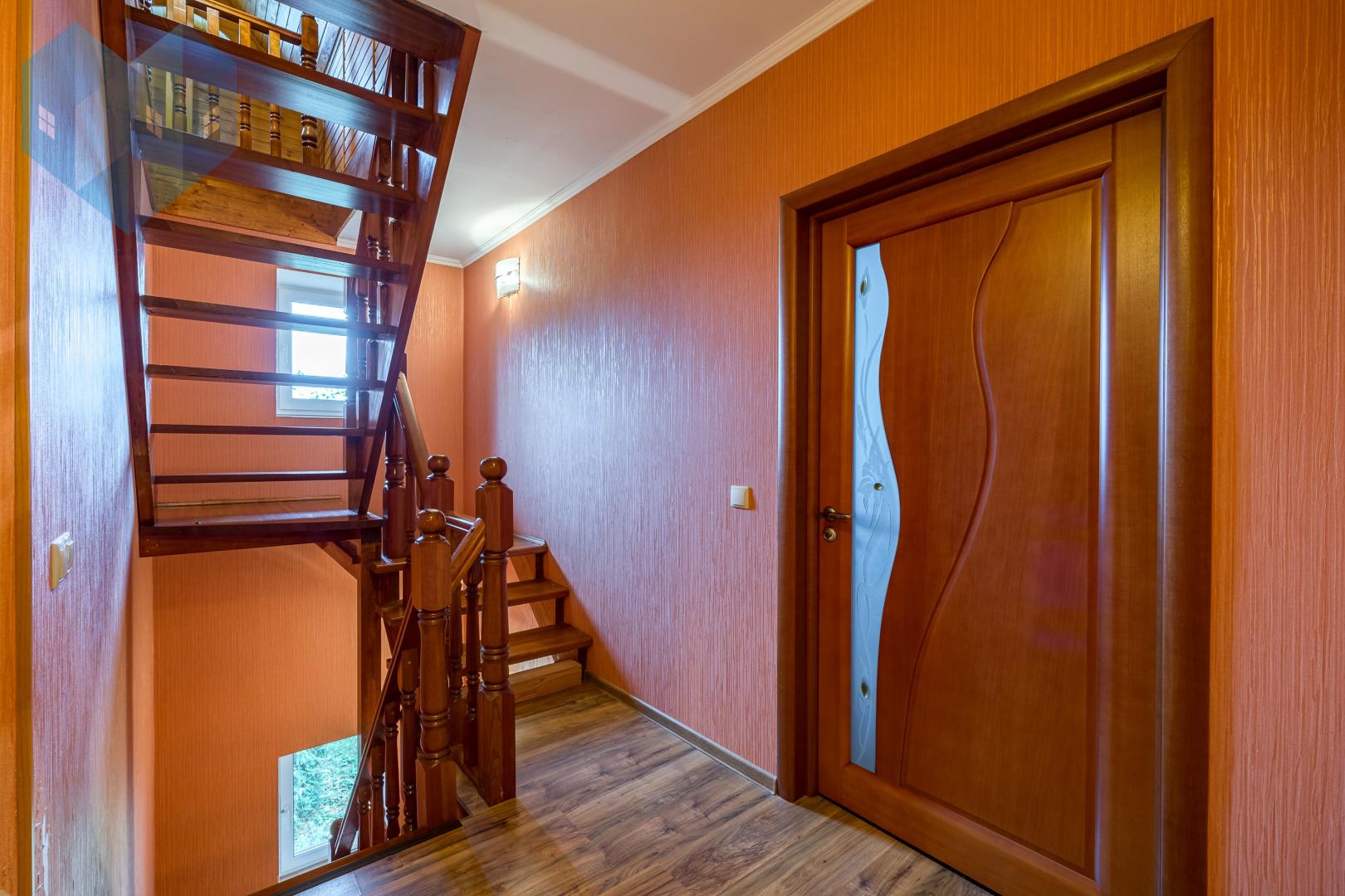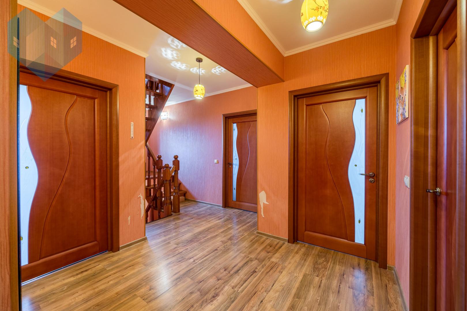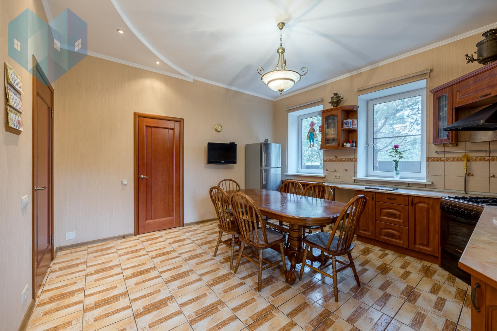 В доме установлены качественные стеклопакеты, сохраняющие тепло и тишину. На кухне есть удобное подсобное помещение в виде отдельной комнаты со входом в просторный подвал — идеальное место для хранения домашних заготовок.