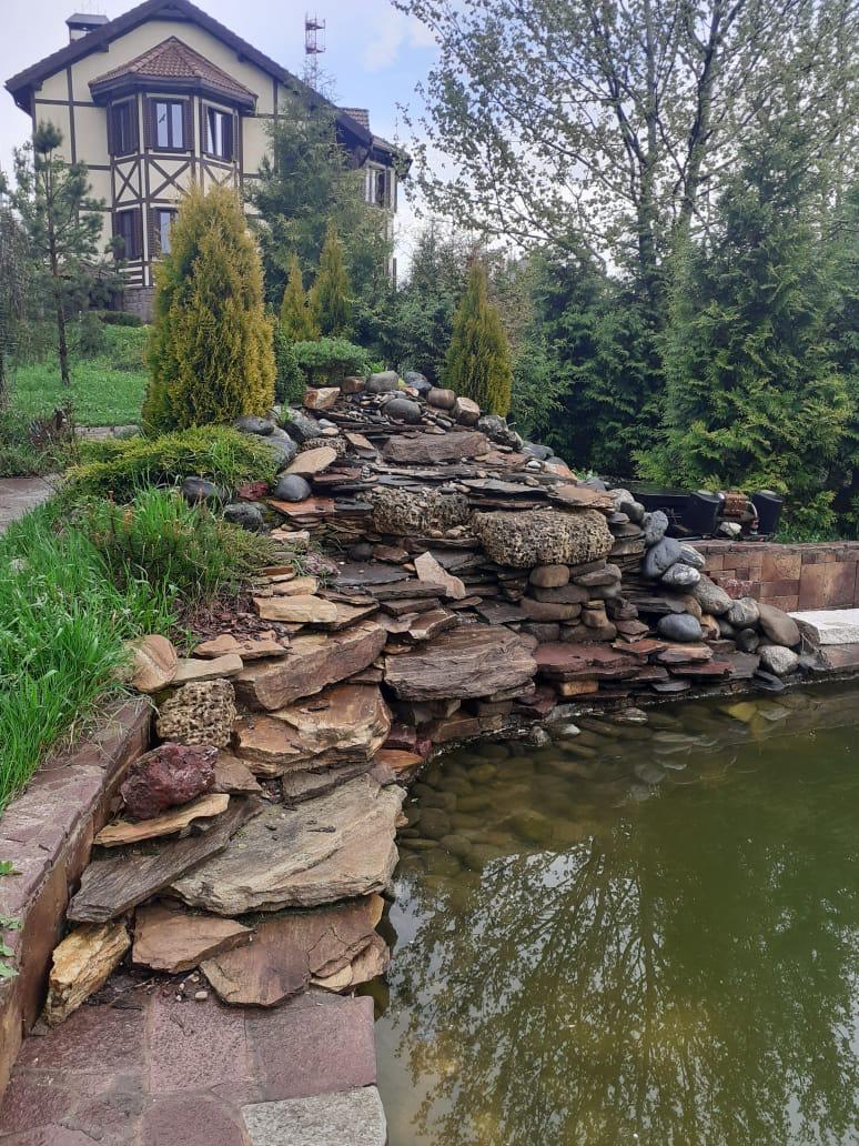 На приватном участке площадью 28.5 соток создан настоящий ландшафтный шедевр. Собственный лес и многообразие декоративных растений, которые подарят свежесть и уединение, а также живописный пруд с декоративным водопадом, где можно наслаждаться тишиной и созерцанием природы.